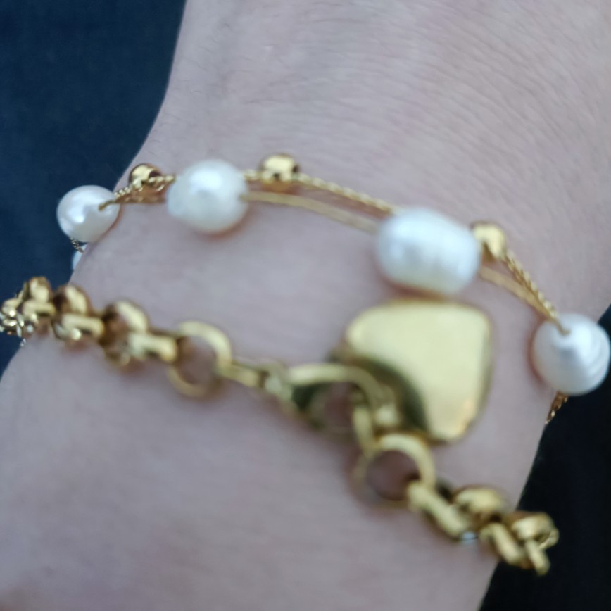 The bracelet is pretty, I hope it doesn't stain, it has a very curious finish and its fabric seems like a more valuable garment, I recommend it,