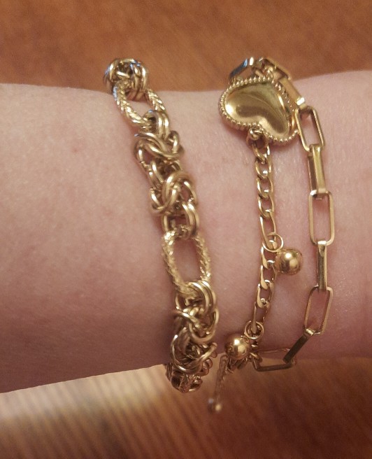 Beautiful bracelet, not heavy is super light for now has good color and material, wait or not make ugly.