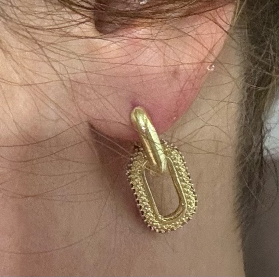 Nice design, can be used in two ways. Is quite hard to open and close the earring, I hope that changes