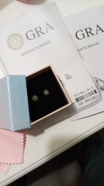 Lovely earrings. Just the right size and the color is simply gorgeous. I'm very happy with these earrings. Vell packed, Gra certificate for both stones.