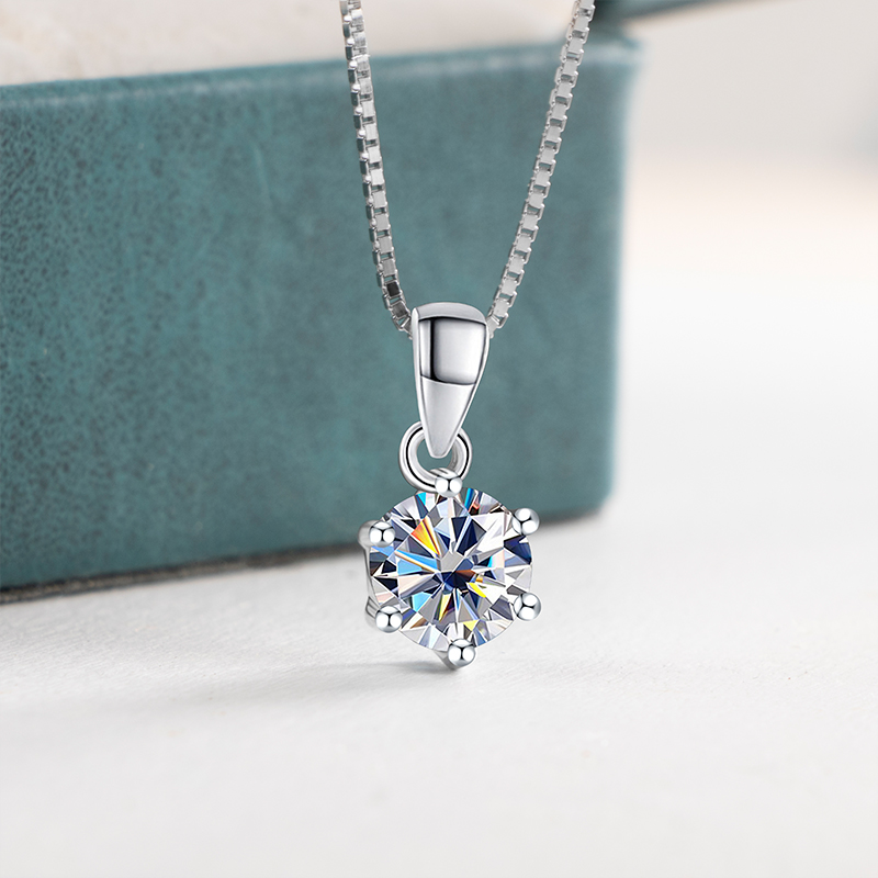 Great pendant with delicate chain. Someone in the reviews said that her jeweler told her it wasn't real silver nor real moissanite, FALSE, the acid test showed white, which means REAL sterling silver and the moissanite passes the diamond test. Great price, thank you.