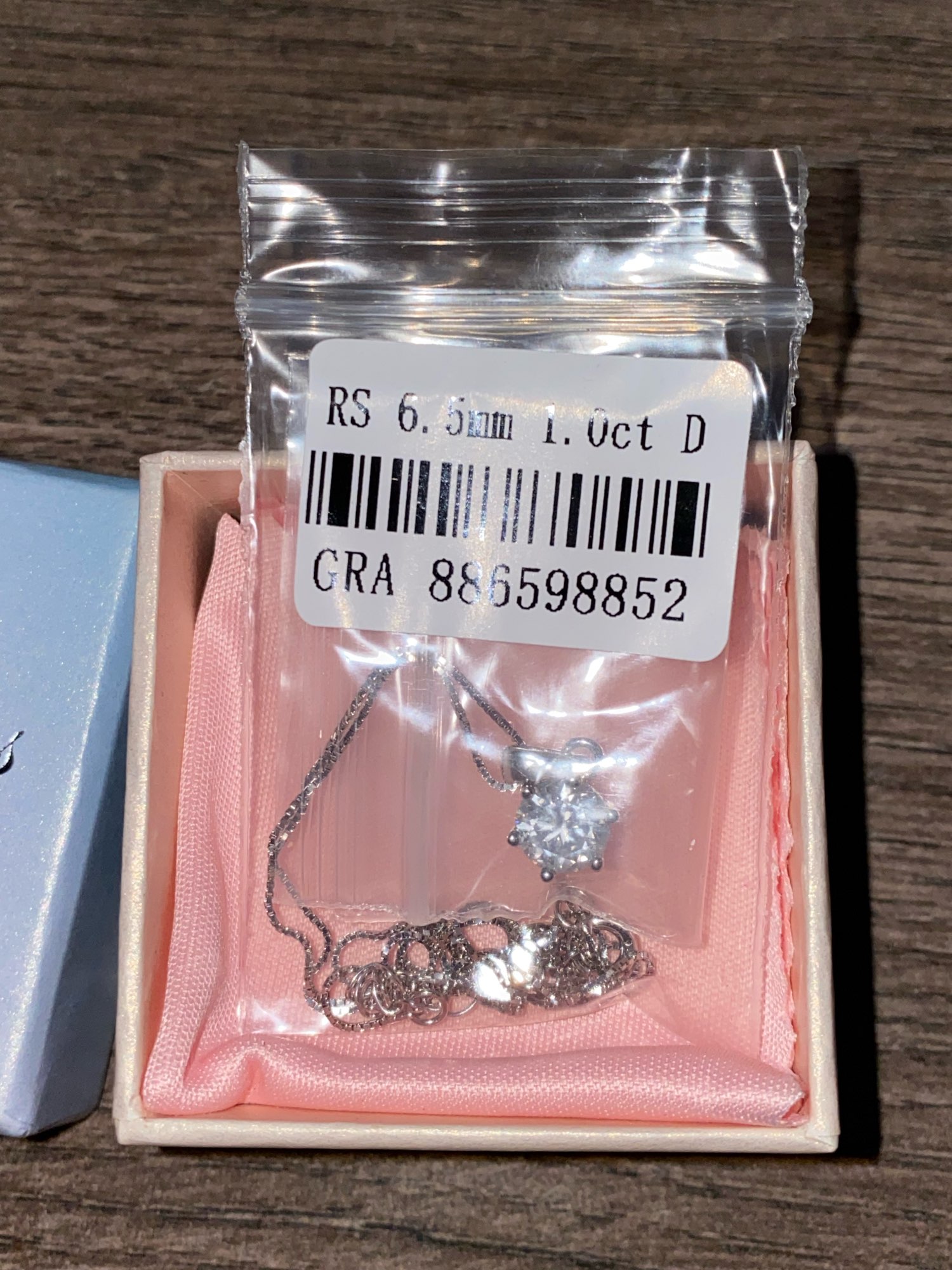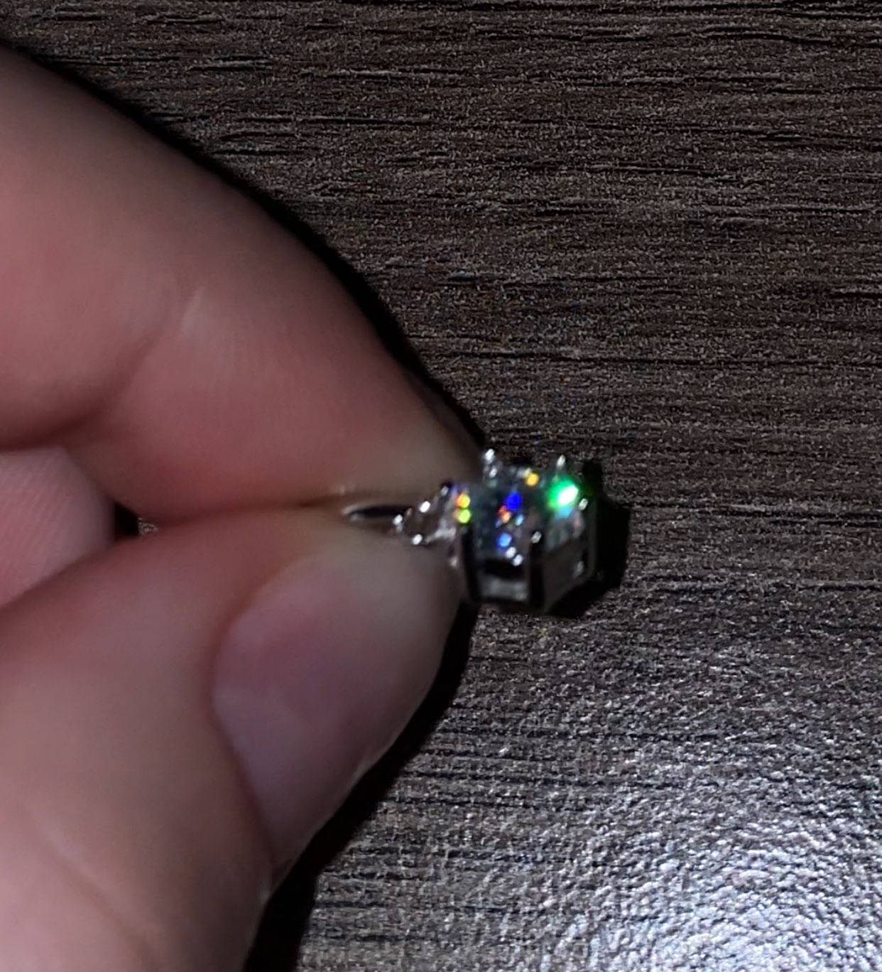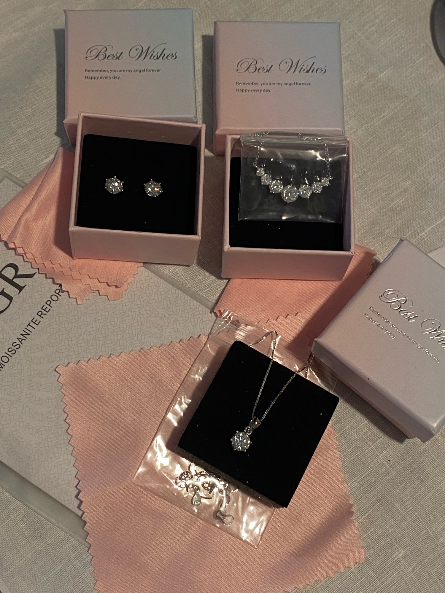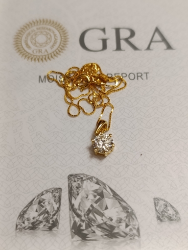 Very beautiful product. Shines like a real diamond. The certificate contains a QR code that leads to a website that indicates all the characteristics of the stone. This is definitely moissanite. Delivery to Ukraine is 10 days.