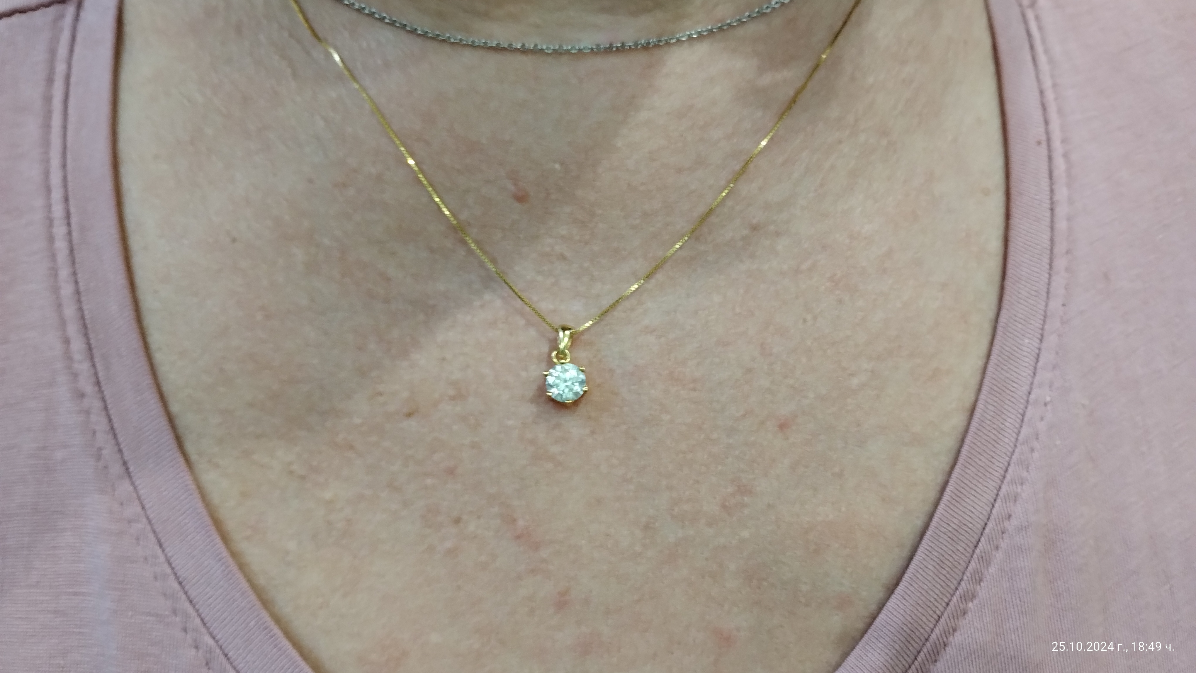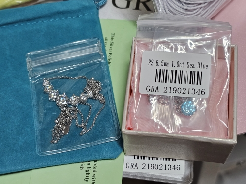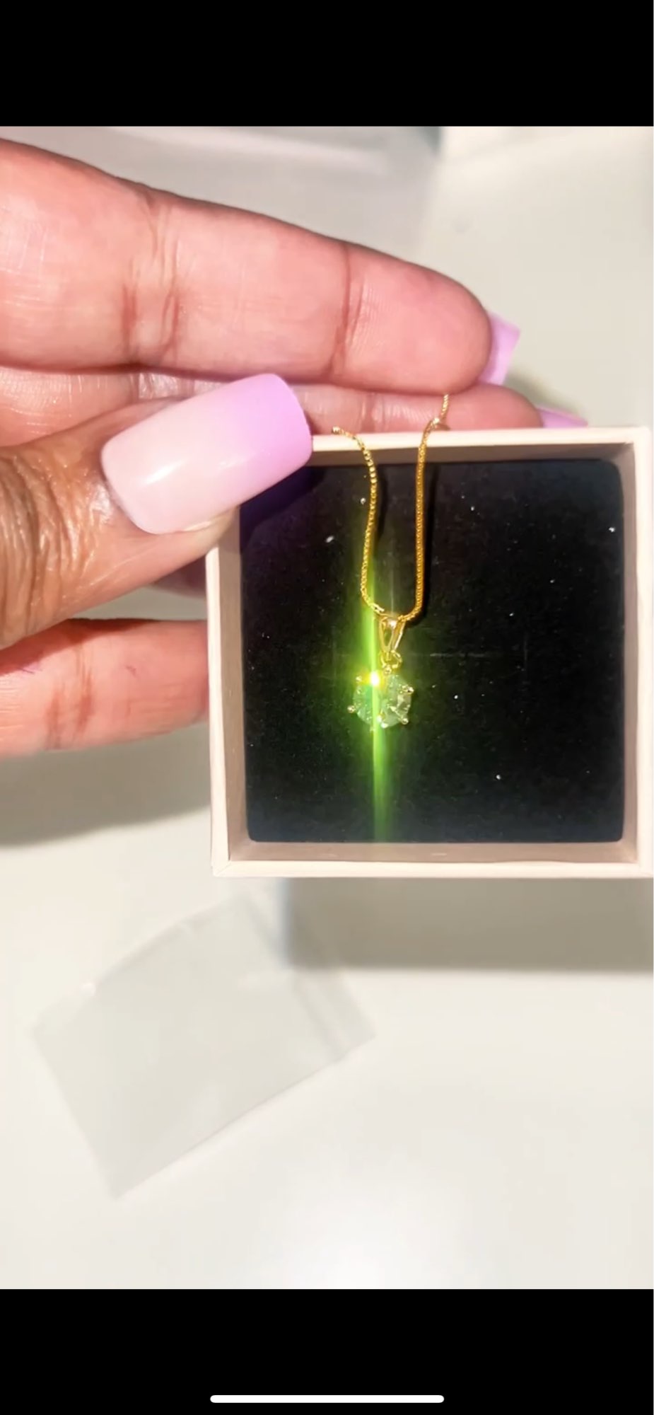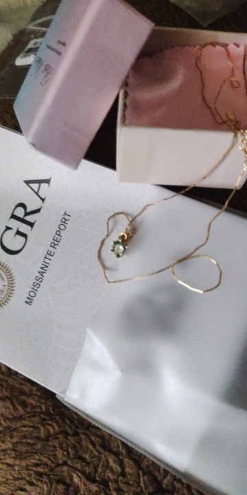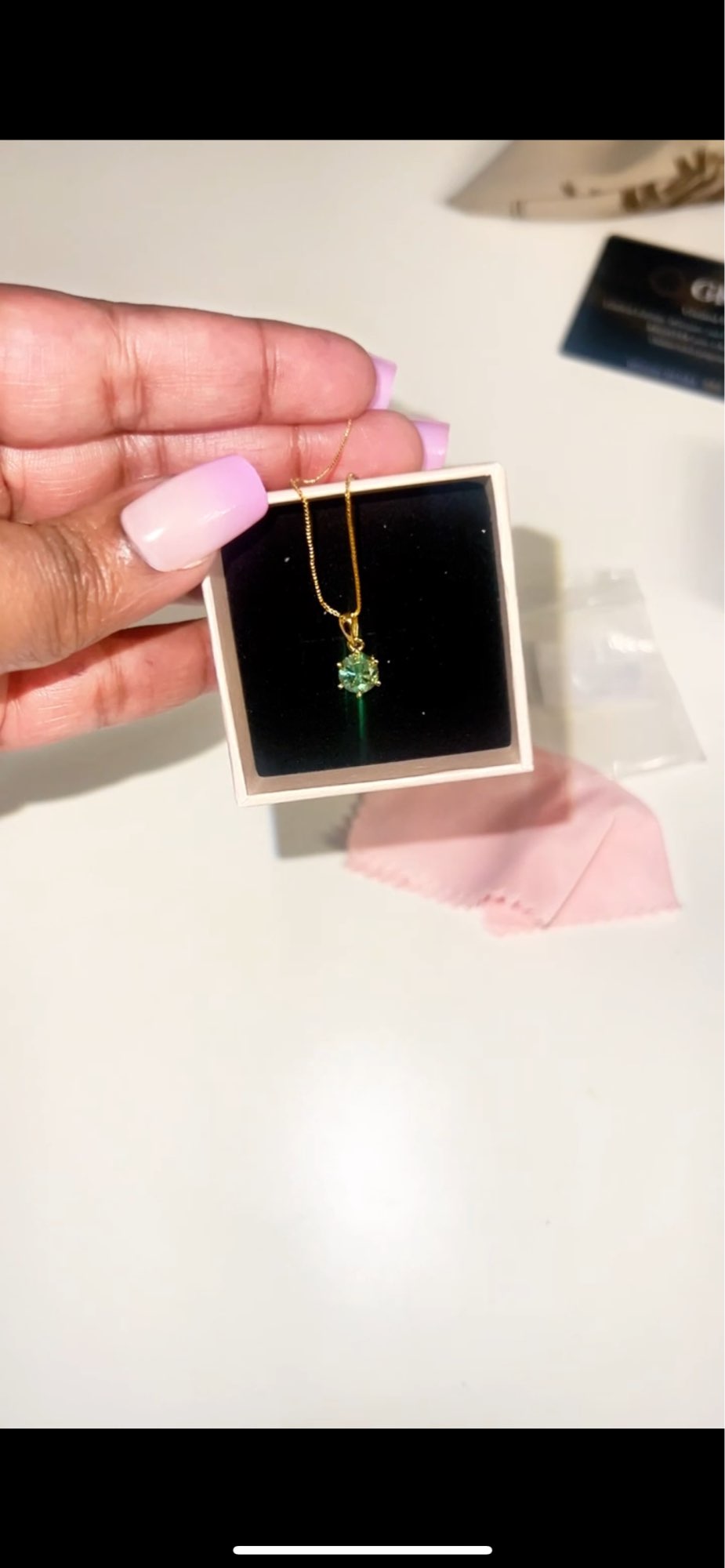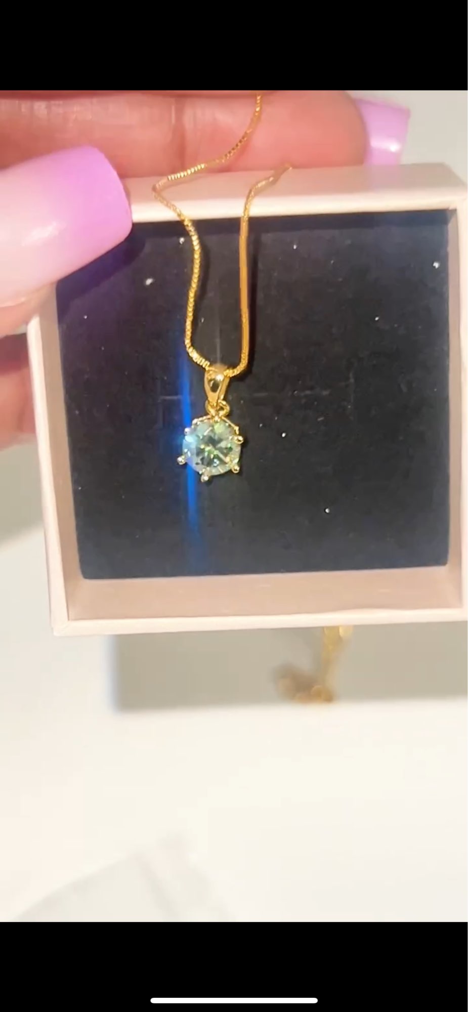 I love the shine it is super cute, the blue stone shines like green and veryyyyyy bright, the chain is delicate and beautiful, it has a box with a cloth to clean and it came with a GRA certificate
