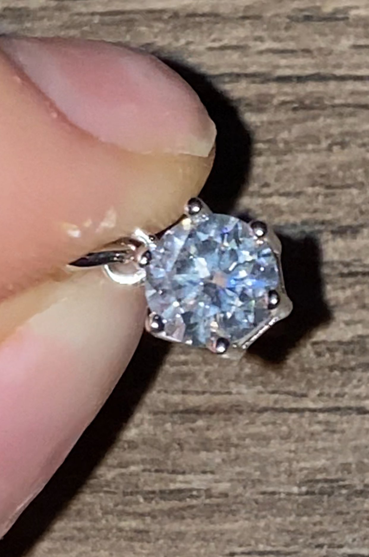 Excellent quality, this is real moissanite. Shiny, clean pure color, looks very stylish and expensive. Delivery also fast. I recommend!