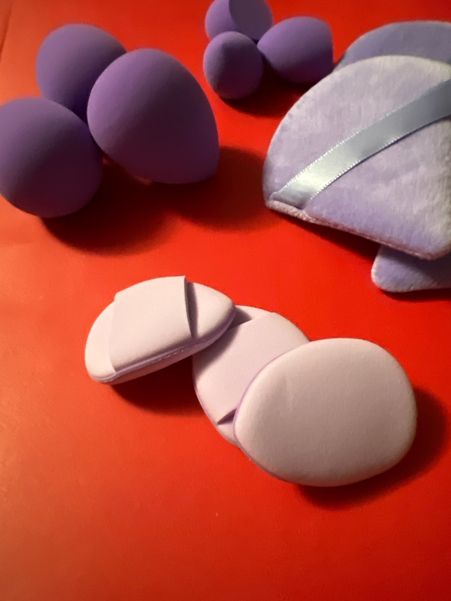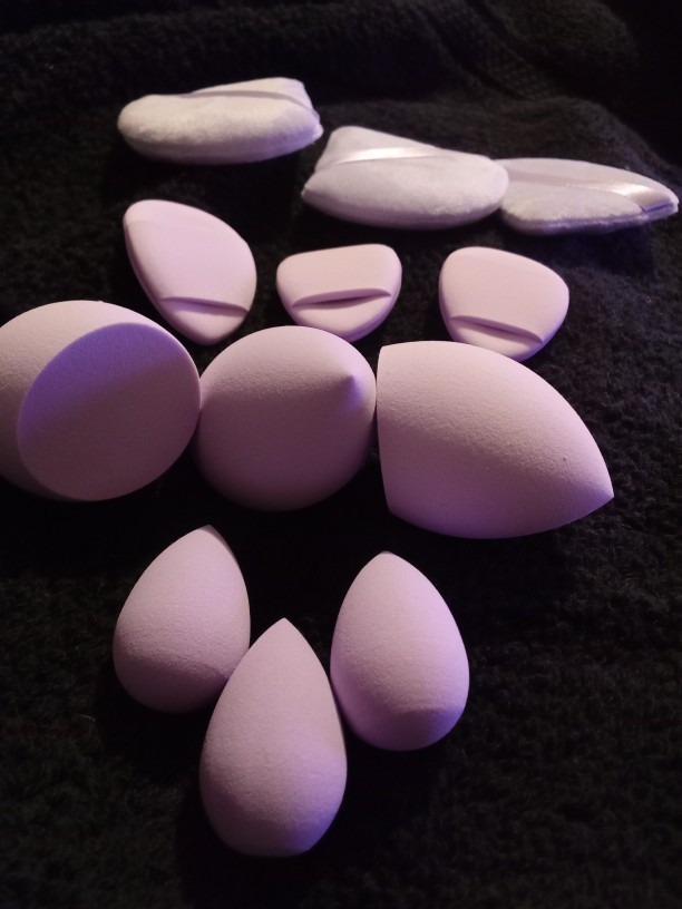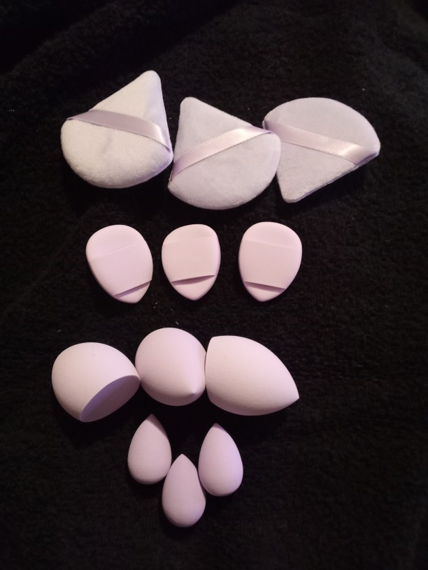good assortment of different sponges and the powder puffs are really soft and good quality!! good price as well