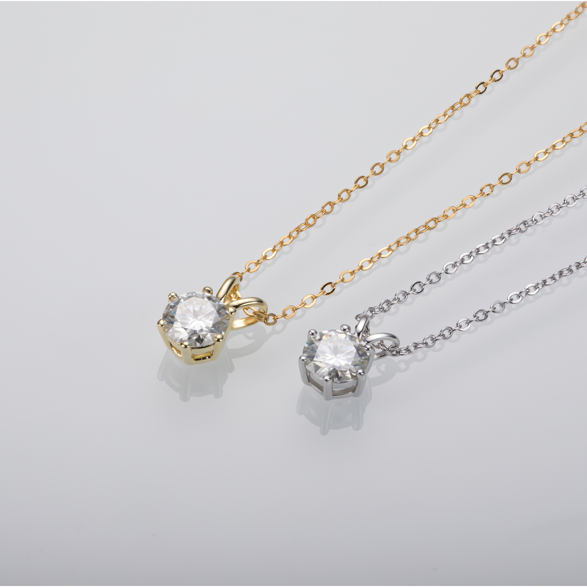The necklace is very well packed. The moissanite is beautiful. I like the fact that there are several rings to hang the necklace according to the length you want.