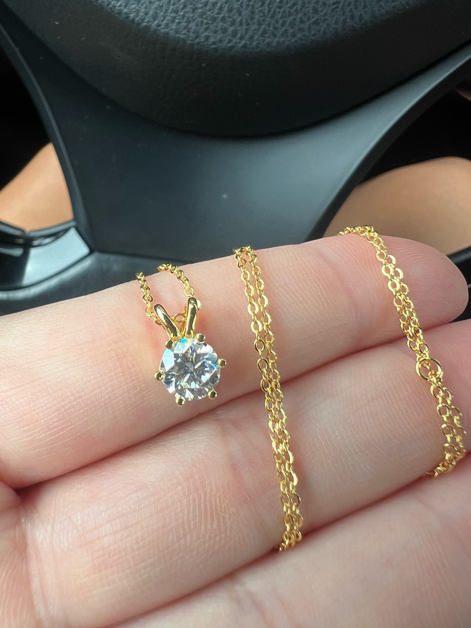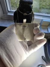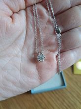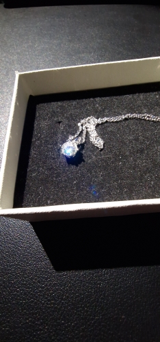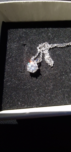 The necklace is very well packed. The moissanite is beautiful. I like the fact that there are several rings to hang the necklace according to the length you want.