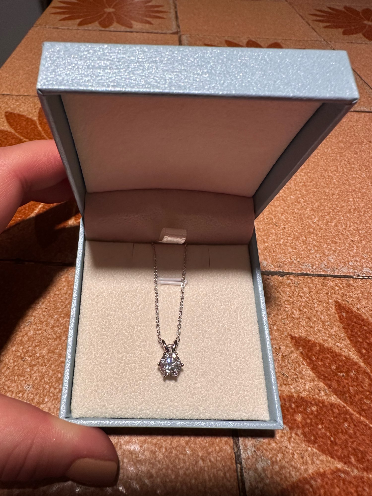 I purchased this 1ct Moissanite diamond and silver necklace from the Anu Jewel Official store, opened 09/2024. It arrived after 13 days shipping in good condition. Seller states the diamond is GRA certified and includes a GRA certificate, warranty card and polishing cloth. Seller states there is a 15-day window for return. The diamond is very beautiful and should wear well. I paid $49.55 USD with coupons. The true test will be if the recipient likes the ring and stone.