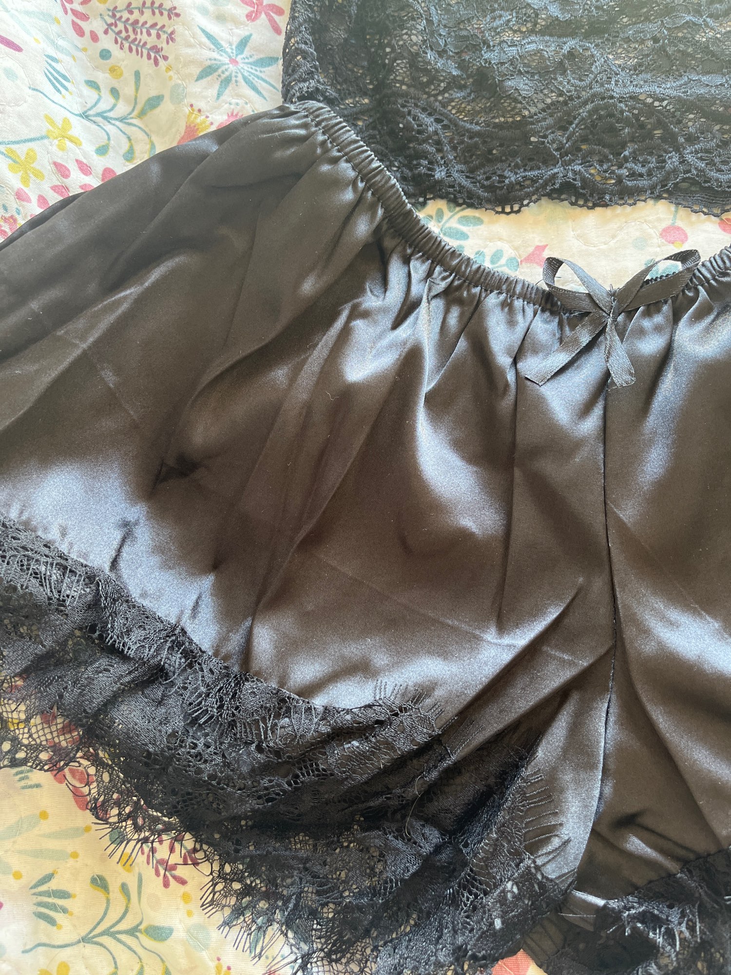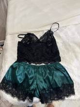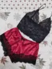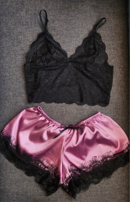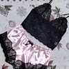2-Piece Pajama Set for Women – Sexy Lingerie Lace Silk Crop Top & Shorts