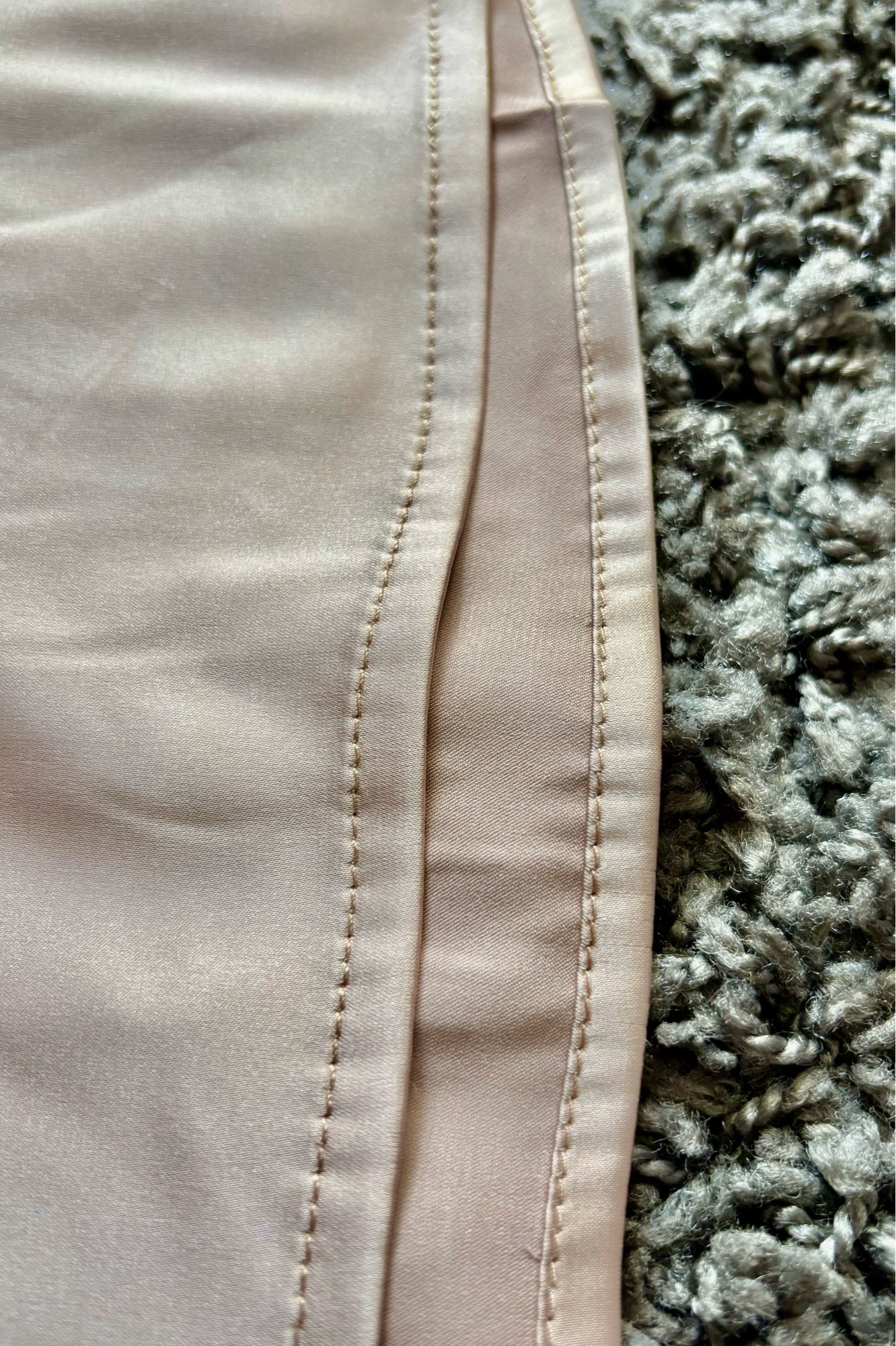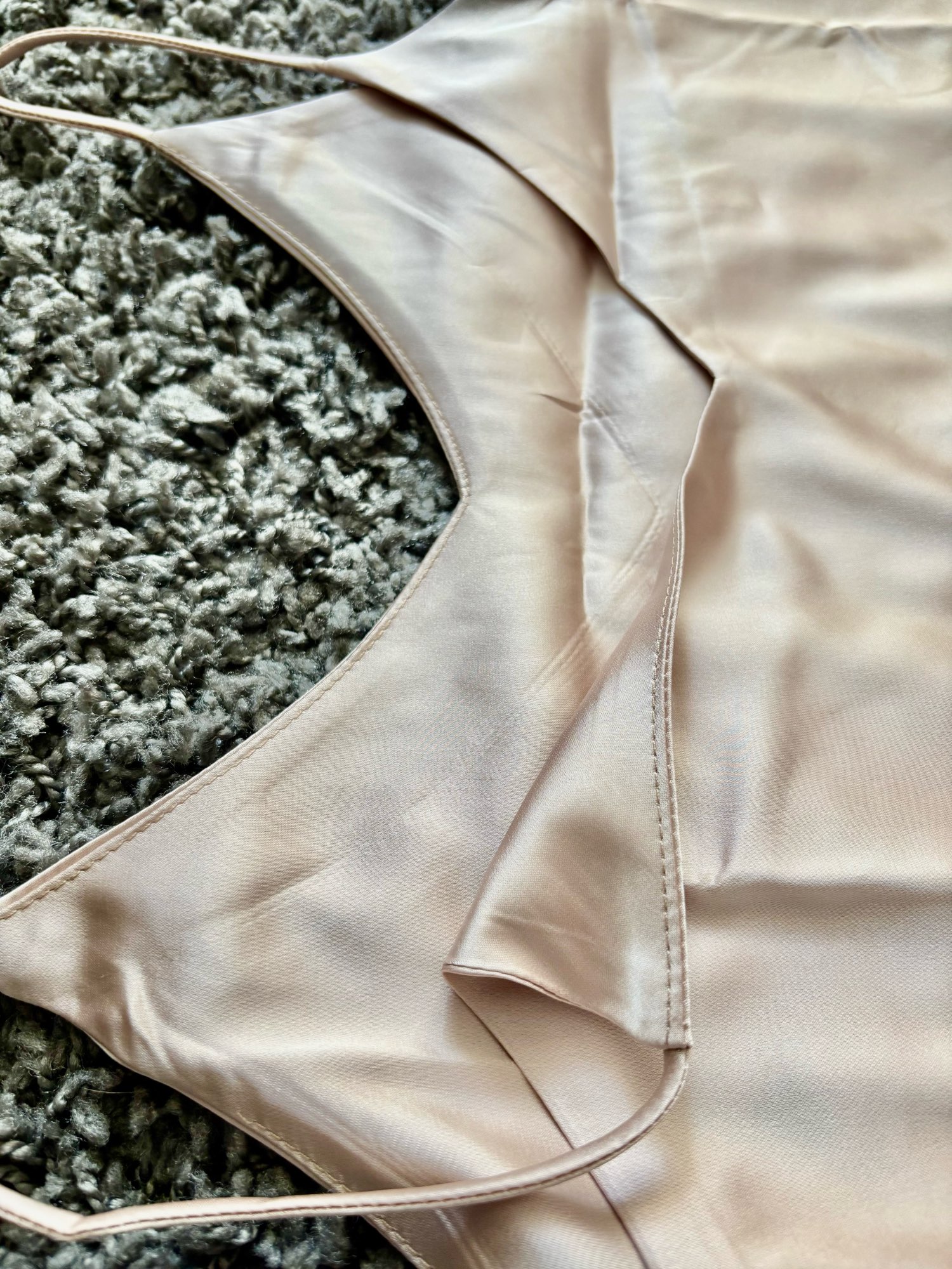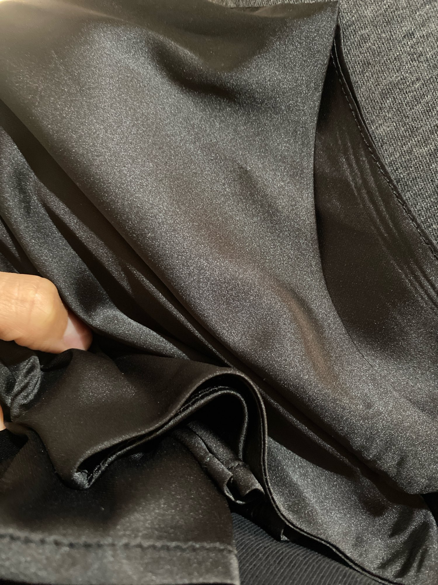 Silk-type fabric, good quality, not warm, subtle gloss, nothing correlated