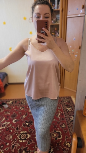 The color is beautiful. The top is soft but runs small. However, I decided to leave but ordered another color, two sizes larger.