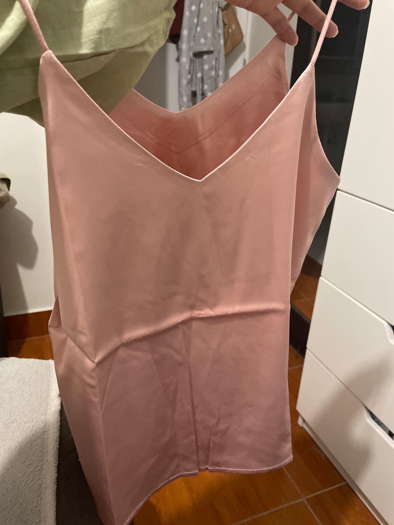Q ft Q I took it does not translate the correct color, the ad is a beautiful color and it came exactly the same as the ad, delicious fabric with elastane and very fresh, I loved it but I could have ordered Hello XL for me Q I have 54 kg and 1,60 was a little wide but for sure, sometimes I ask for a big one because it is Korean size Q is very small but it was not the case