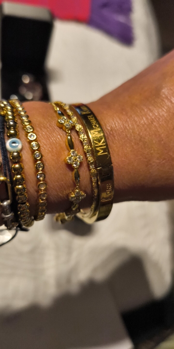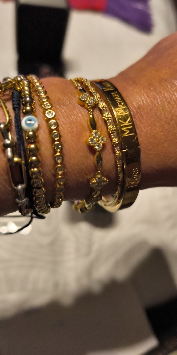 It looks delicate, looks like gold, the ameee is very beautiful and adjustable.