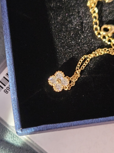Very, very tiny, very sparkly, i recommend good for a child first.necklace good seller came really fast