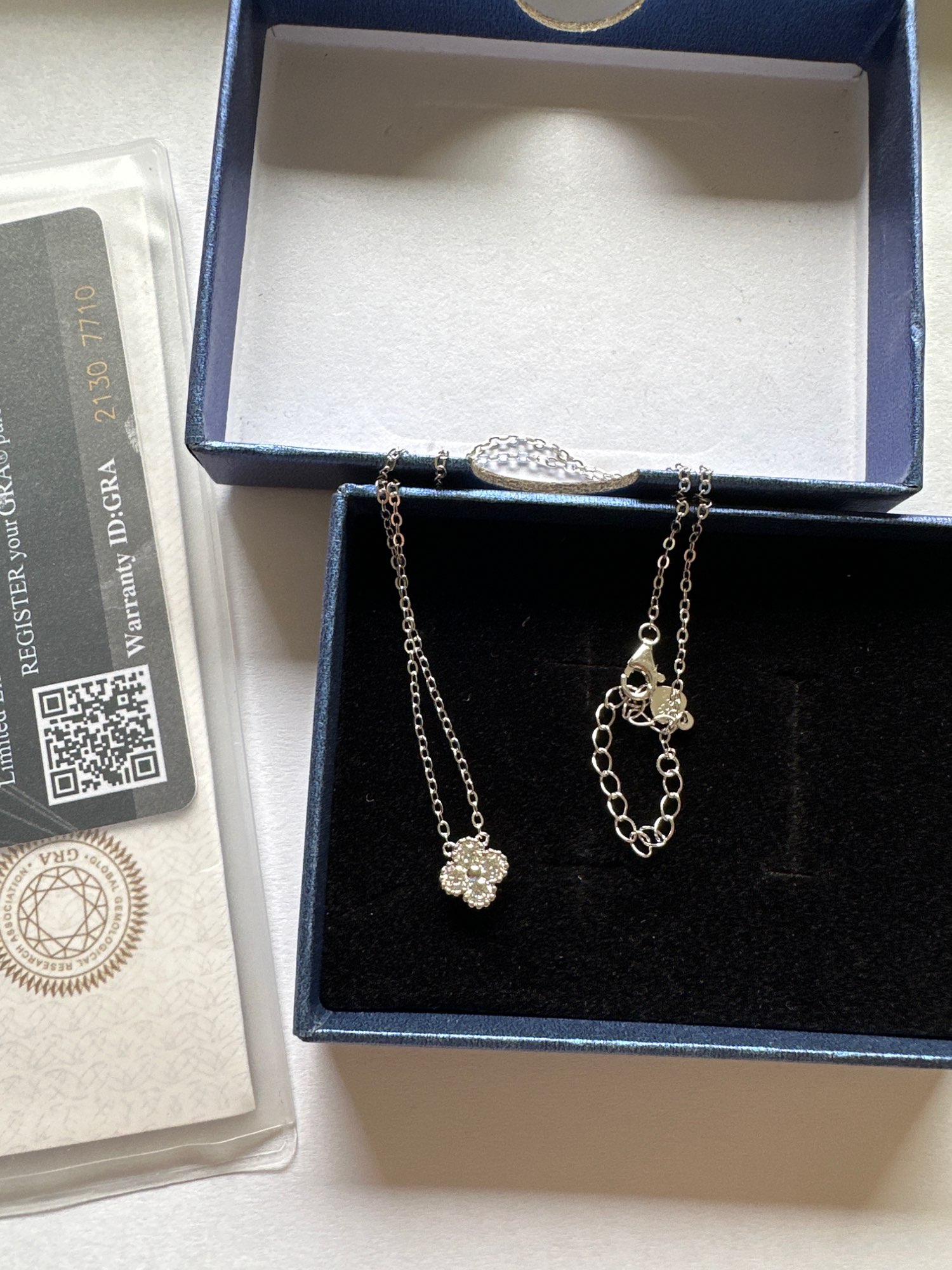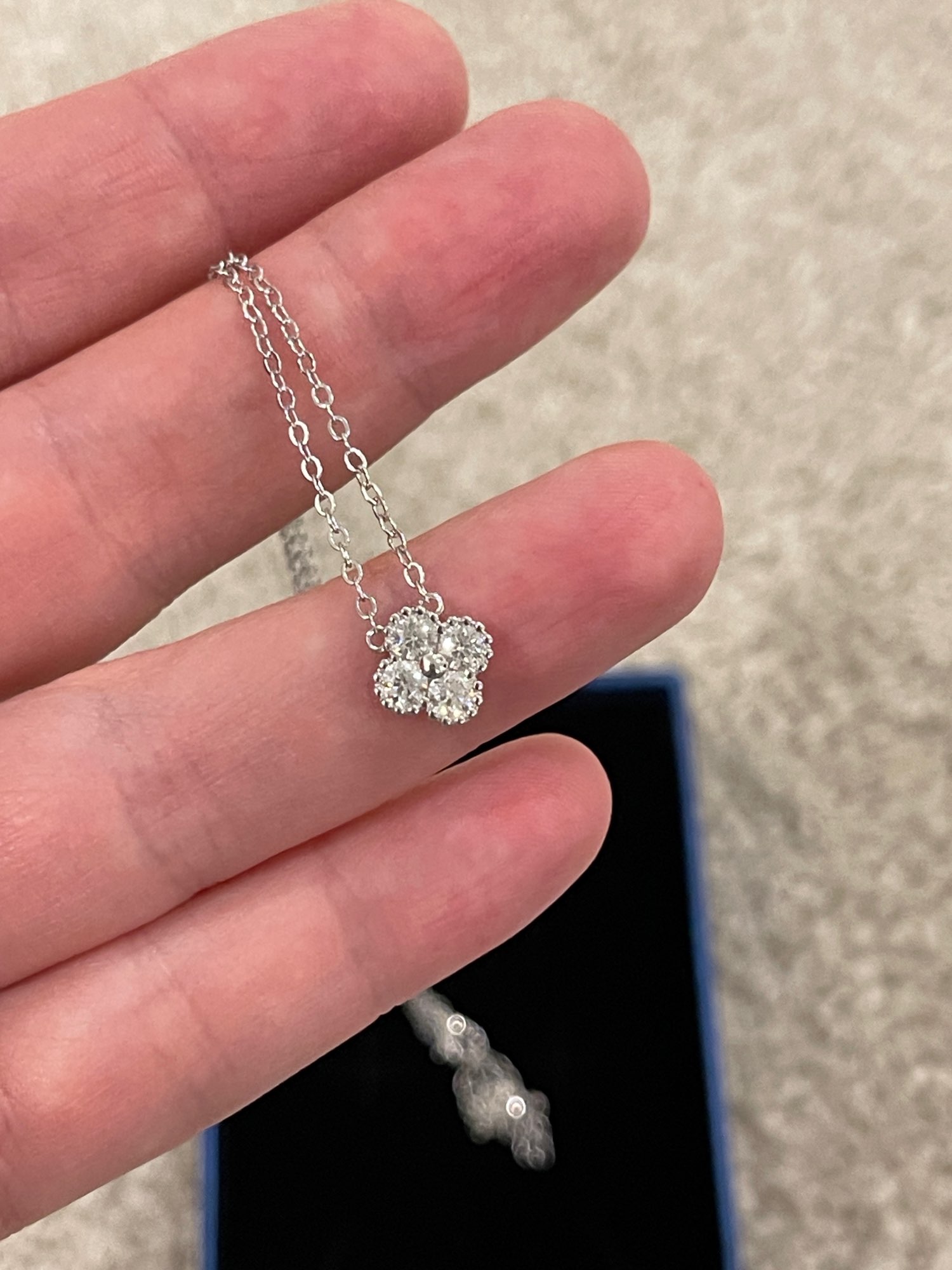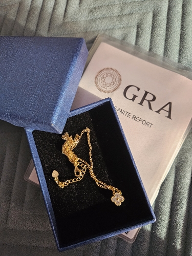 Nice delicate moussanite necklace, shines beautifully!!! Quick shipment to canada! It’s not very big, but proper size for me!