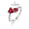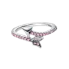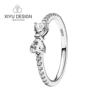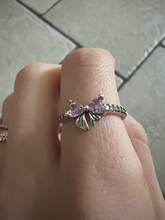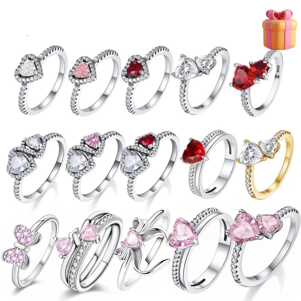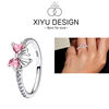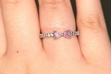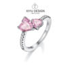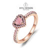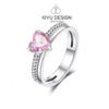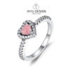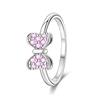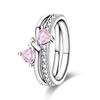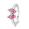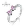 925 Silver Ring Pink Heart Zircon Shining Bow Ring Original