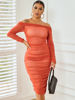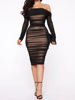 Mesh Sheer Off Shoulder Midi Party Dress Women Spring Elegant Long Sleeve Ruched Bodycon Dresses