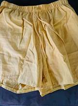 Very nice fabric, beautiful yellow color, size i took Xl and is fits perfectly, i am usually european size M /L 38-40 , I have them also in pink .