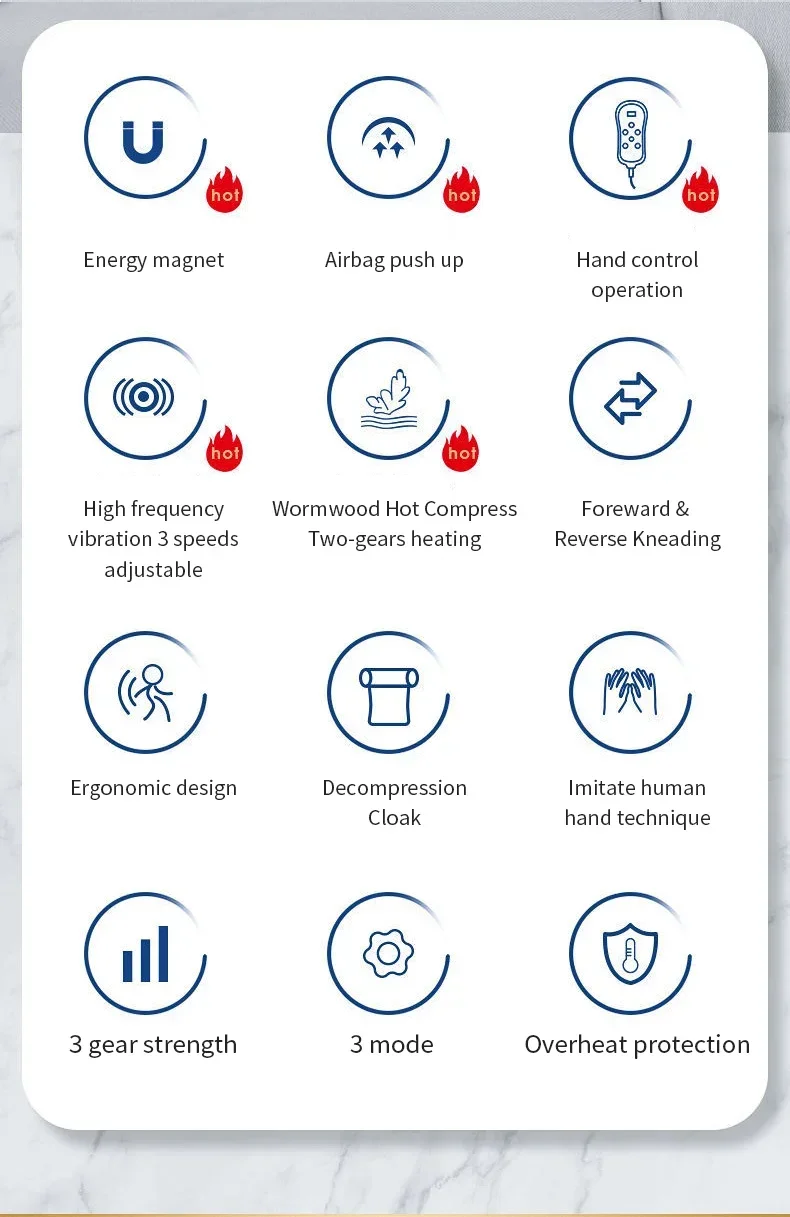 After five minutes of massage, blood circulation improves and warmth appears in the body. This pillow without remote.