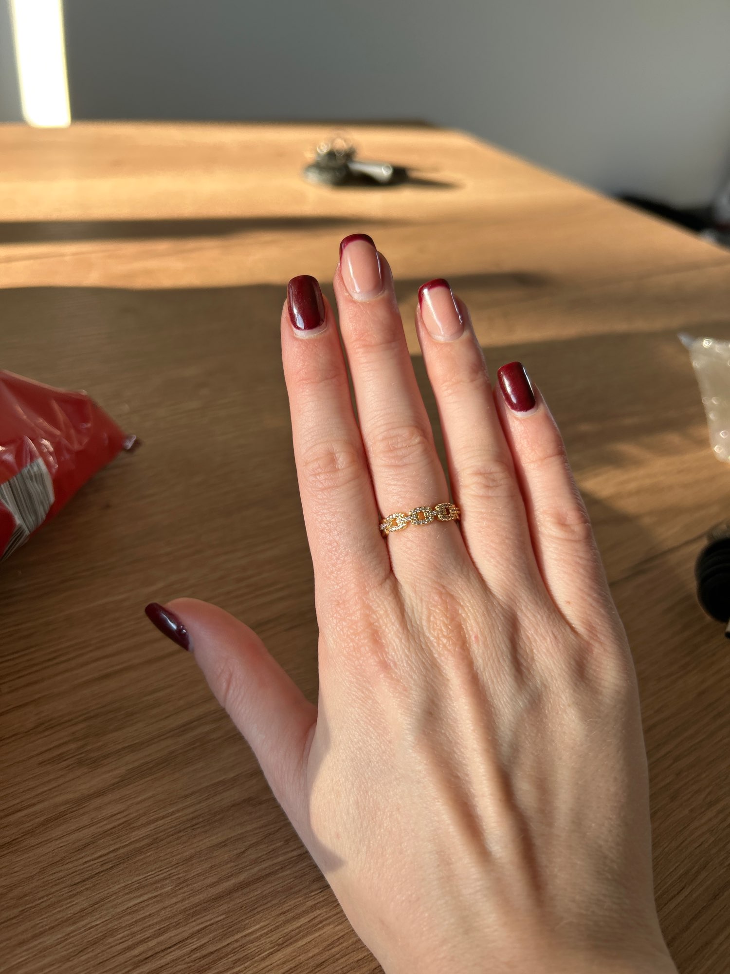 Has arrived in good condition, it is quite malleable to fit the finger and bright. I could even put it on my big toe.