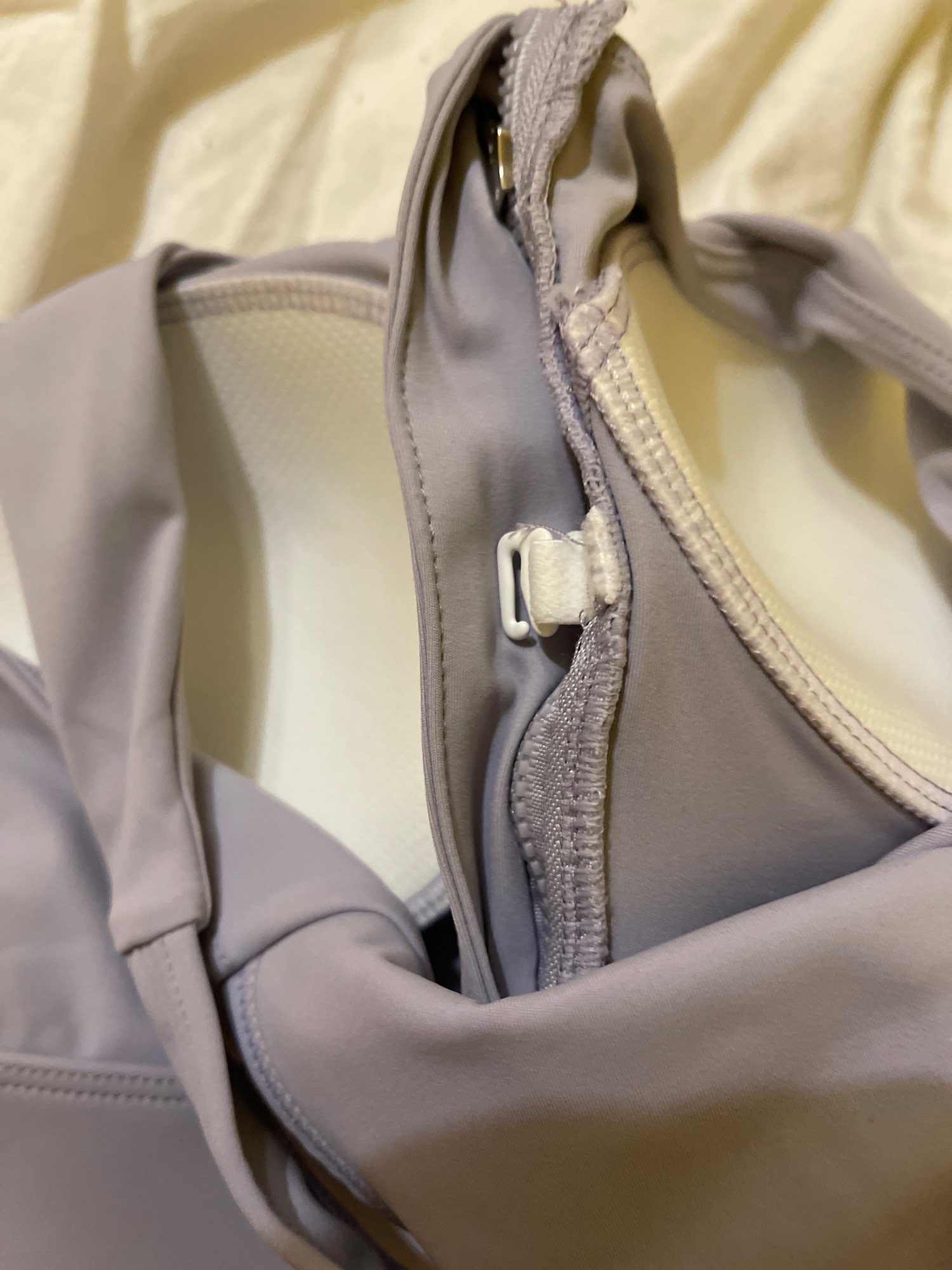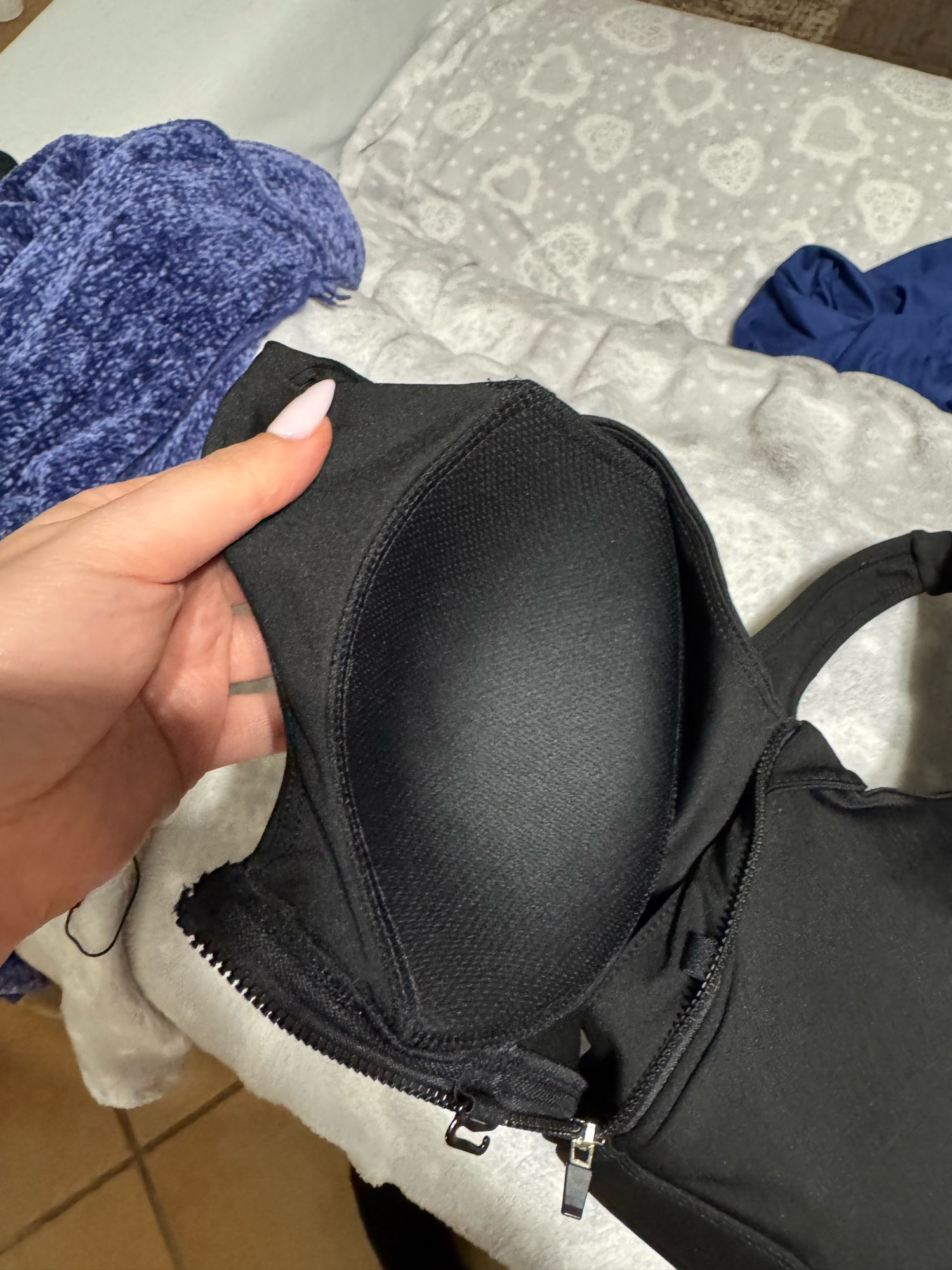 Condition that the bra cap is attached to the clothes, there are two layers of fabric, so we will make a pocket and remove the cap and put it inside. Soft and soft. It's a D cup, but this ideal seems hard. It is very difficult to lock the zipper.