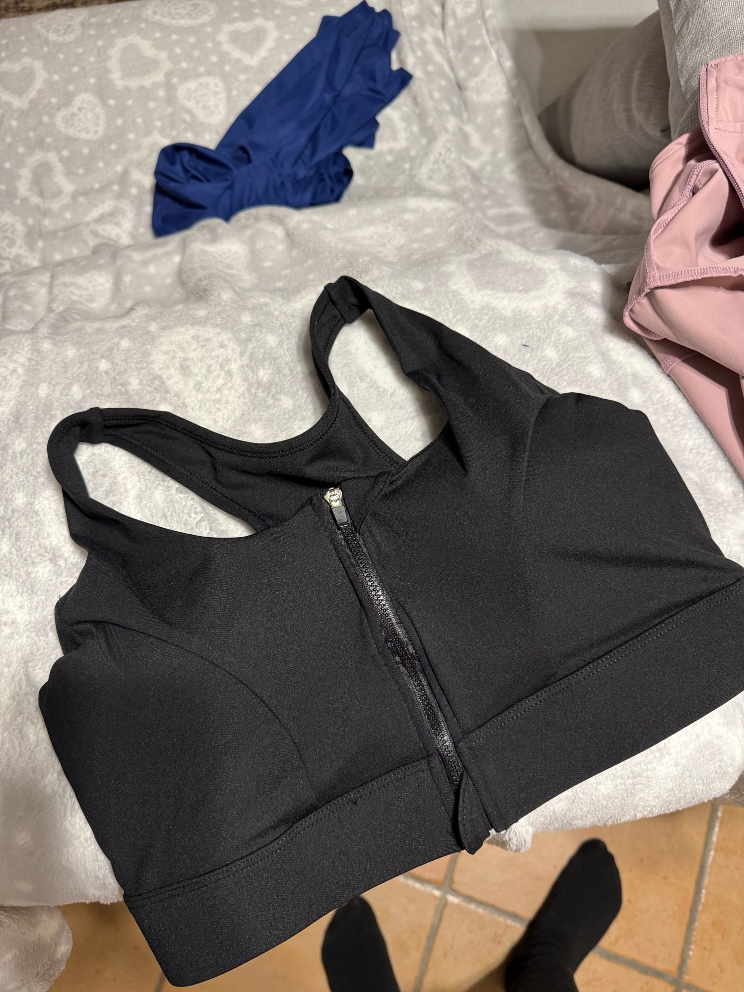 The quality is very good, I once wanted to buy a similar bra in the adidas store, but there was no money. Here the cups are sewn, will fall out or scratch. There is still a clasp inside so that the training does not disconnect. Very simple. I ordered myself still black.