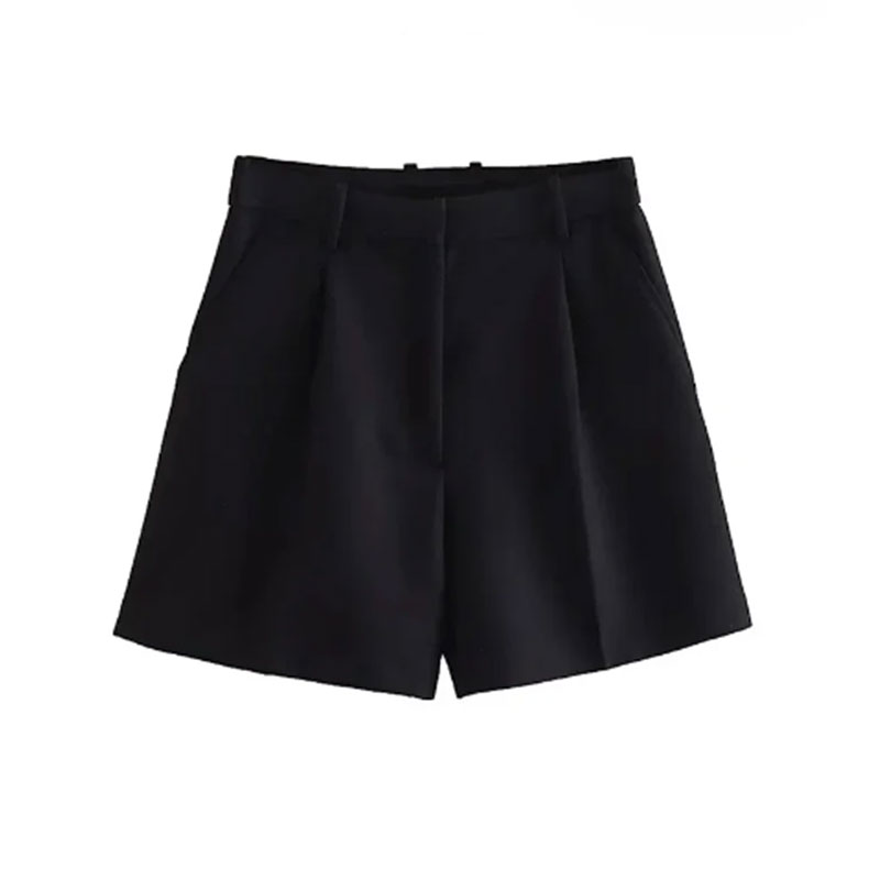 Women’s Shorts Side Pockets Front Darts Vintage High Waist Bermuda Shorts
