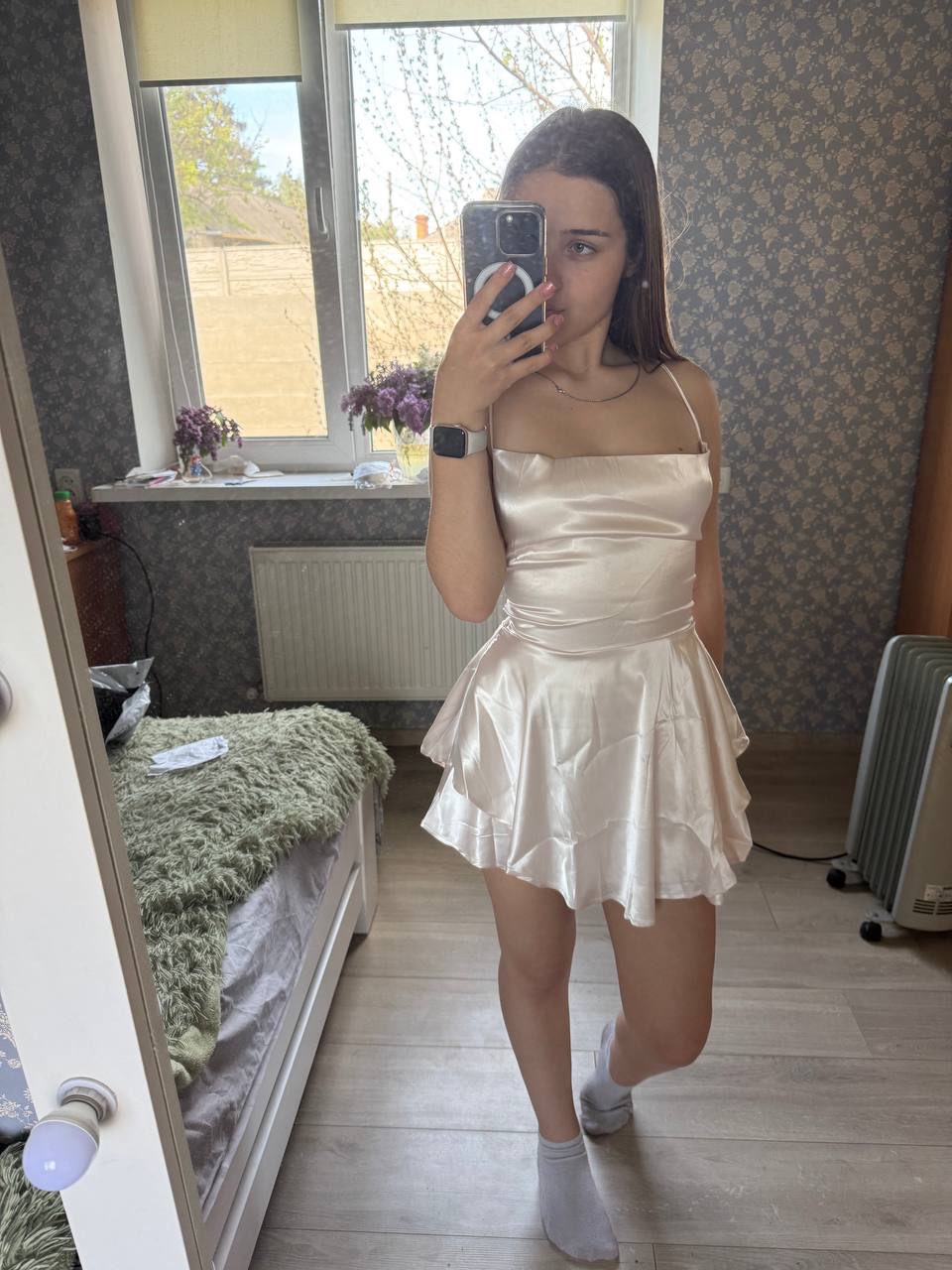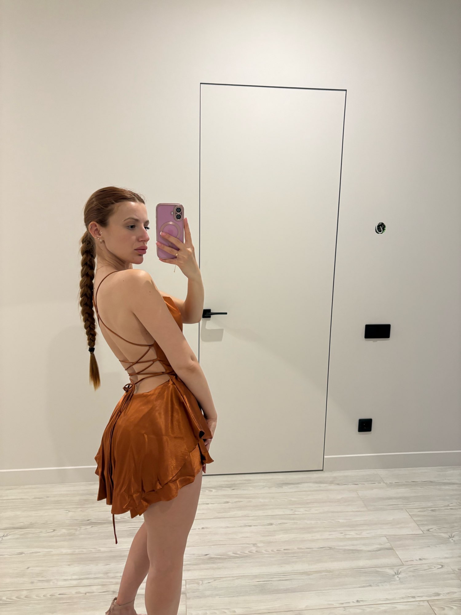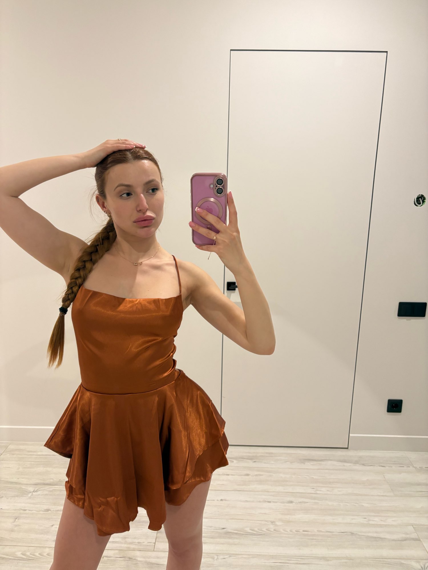 Just picked it up, immediately tried it on without ironing, ordered another Ukrainian-made one. I can say that this is sewn much better, the color is more burgundy and pinkish, great for girls with a cool undertone. Very satisfied with this dress, it fits like in the pictures, true to size. 🍑 Damn, how it poured. Arrived quickly