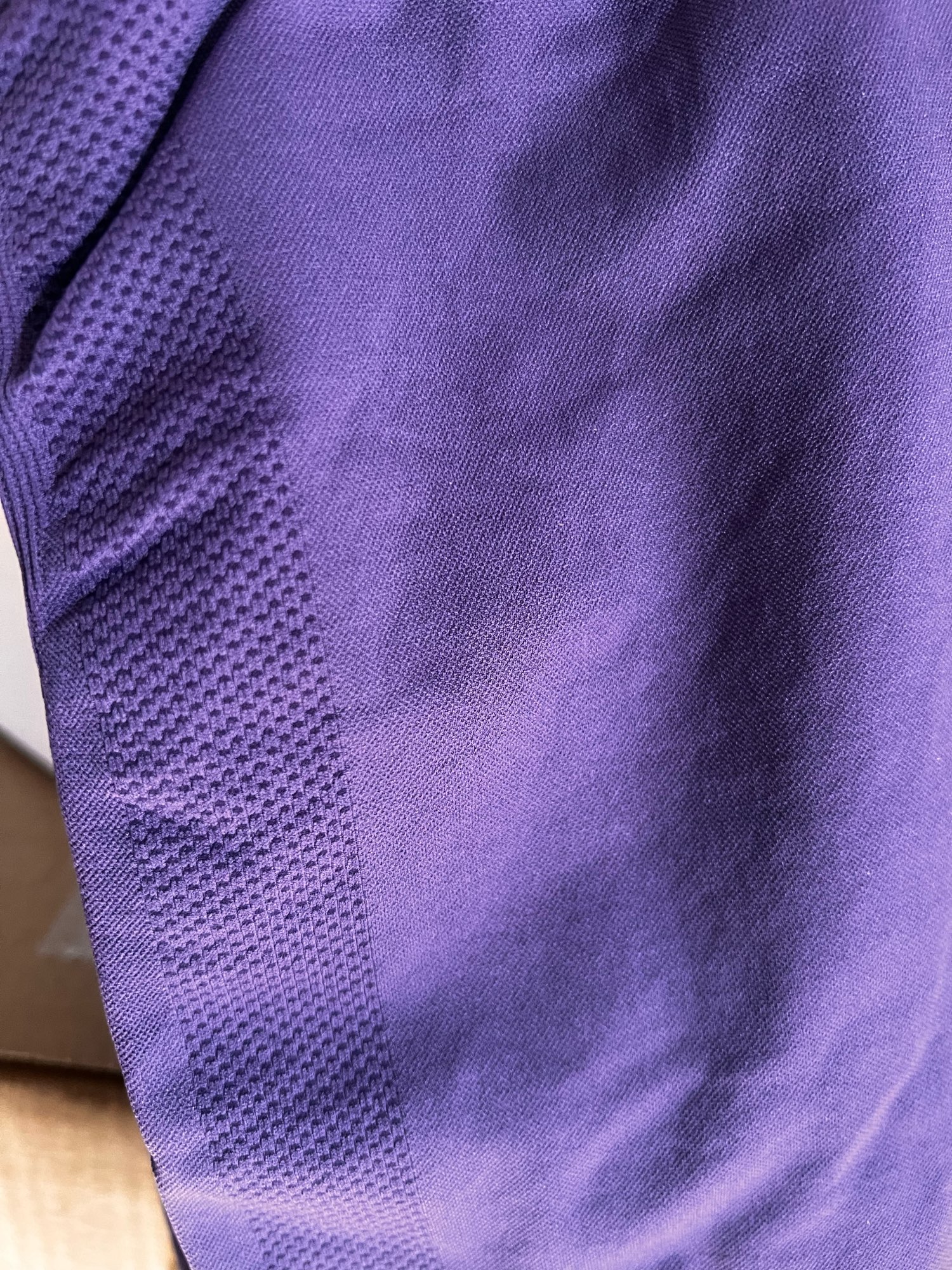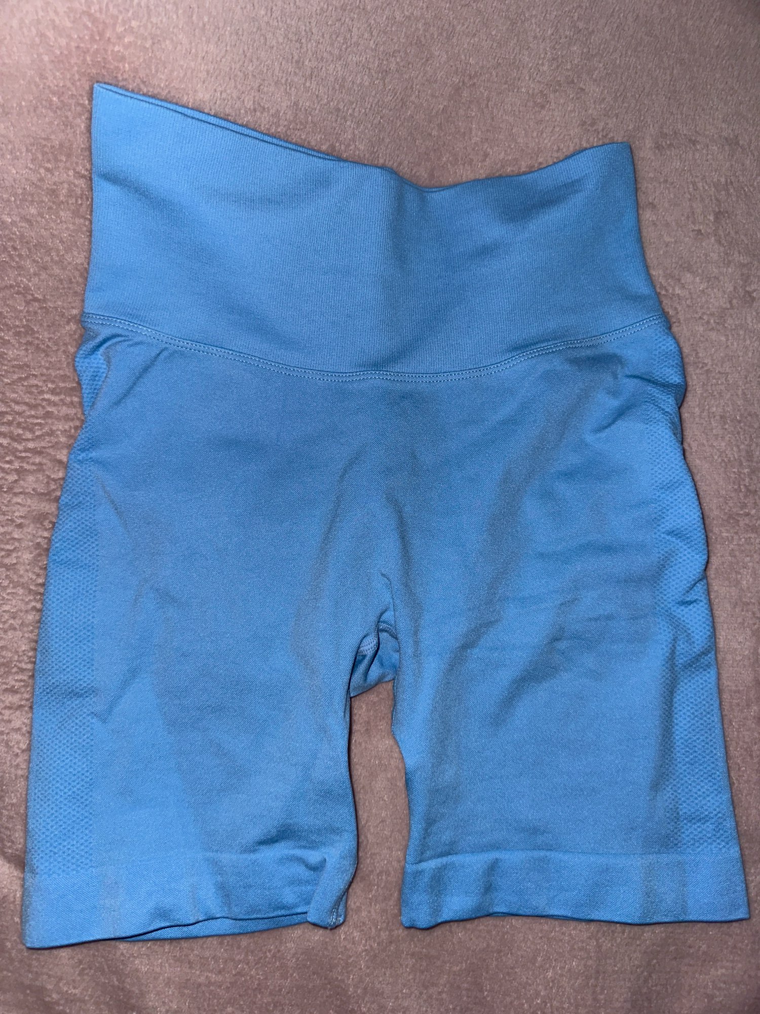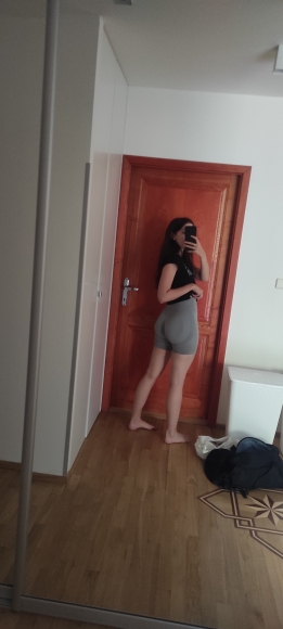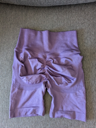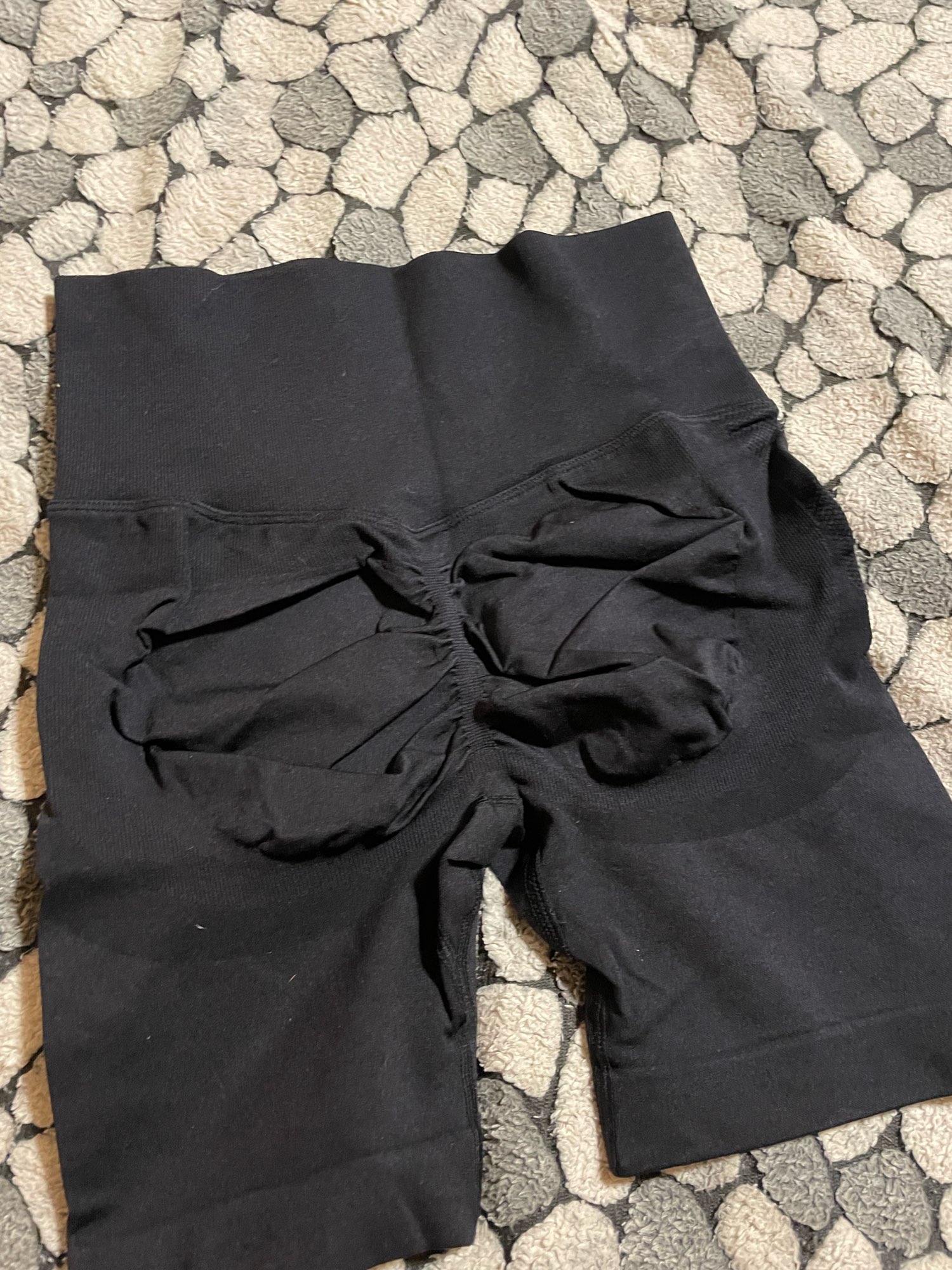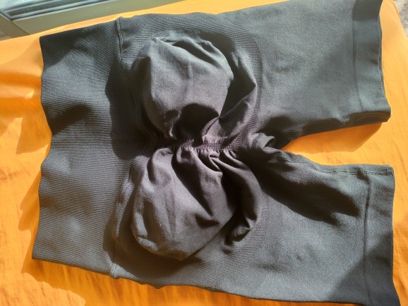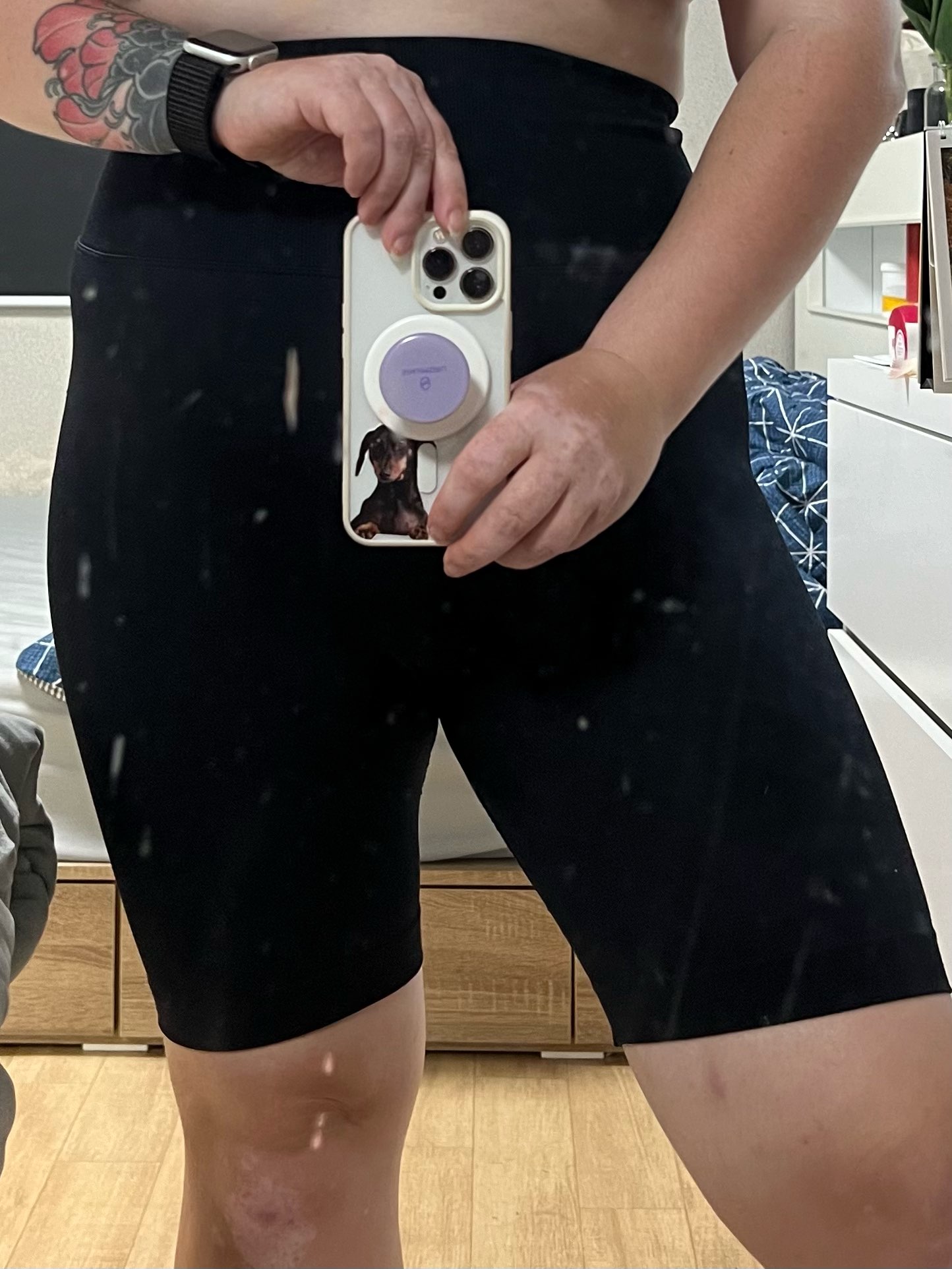 Nice biker shorts! Tight, thick, stretchy. High waist covers belly. Satisfying for sport and for casual outfits.