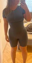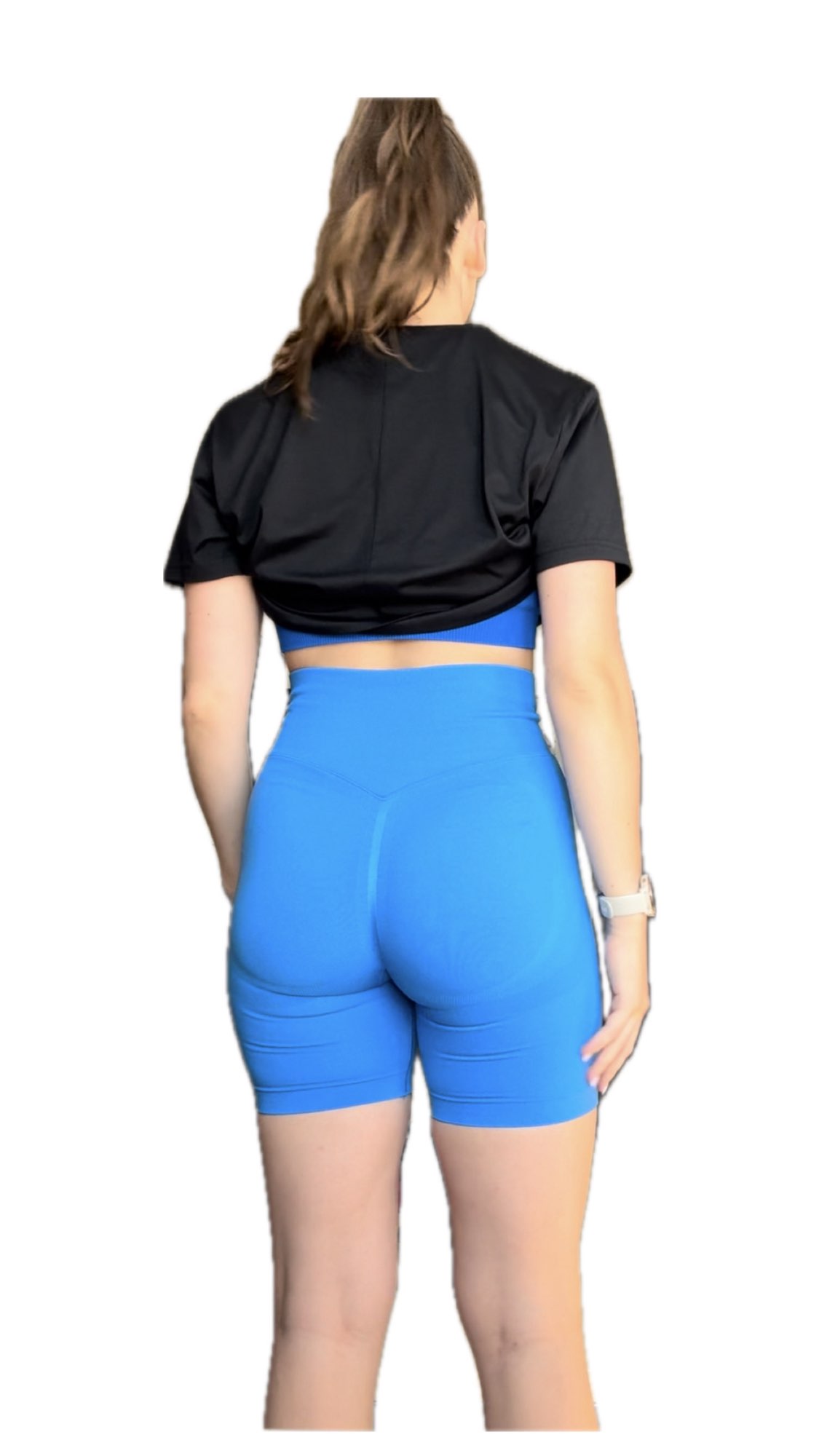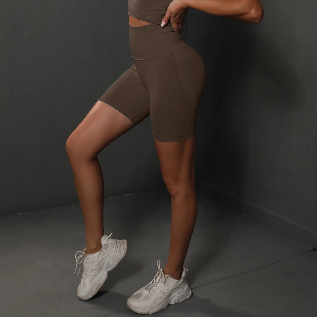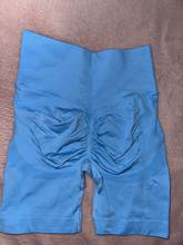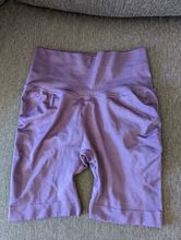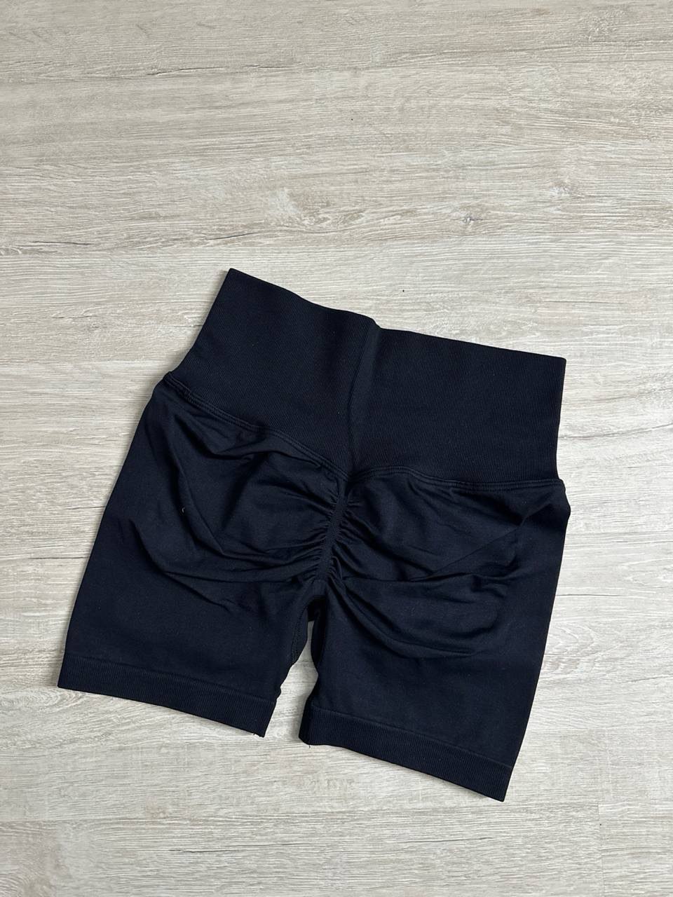 Nice biker shorts! Tight, thick, stretchy. High waist covers belly. Satisfying for sport and for casual outfits.