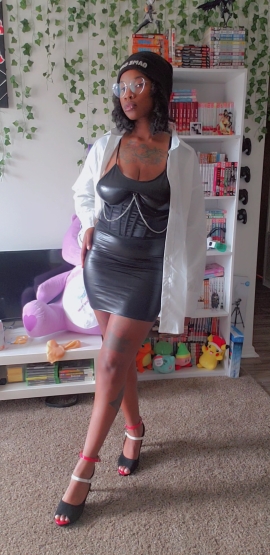 styled the dress with my own accessories. looks just like the picture. not really meant for bigger chests but you can make it work. I order a large when I usually go with medium. I'm glad I did. cause it fits like a sm lol. and it came with a pair of floss panties. and you know what I mean by floss...