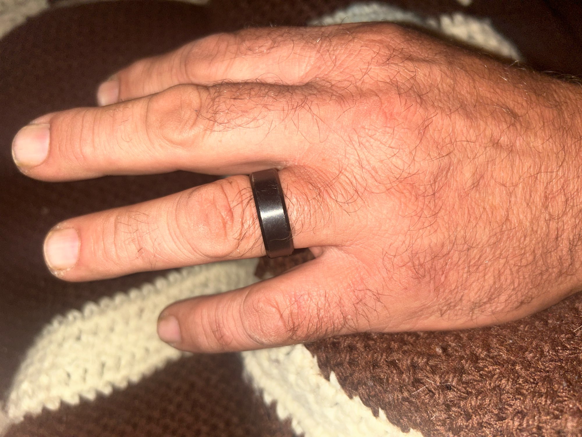 Exactly what i expected. It's a simple, solid, black ring. The matte finish looks nice and it feels comfortable to wear. Nothing flashy, but it's good for the price.