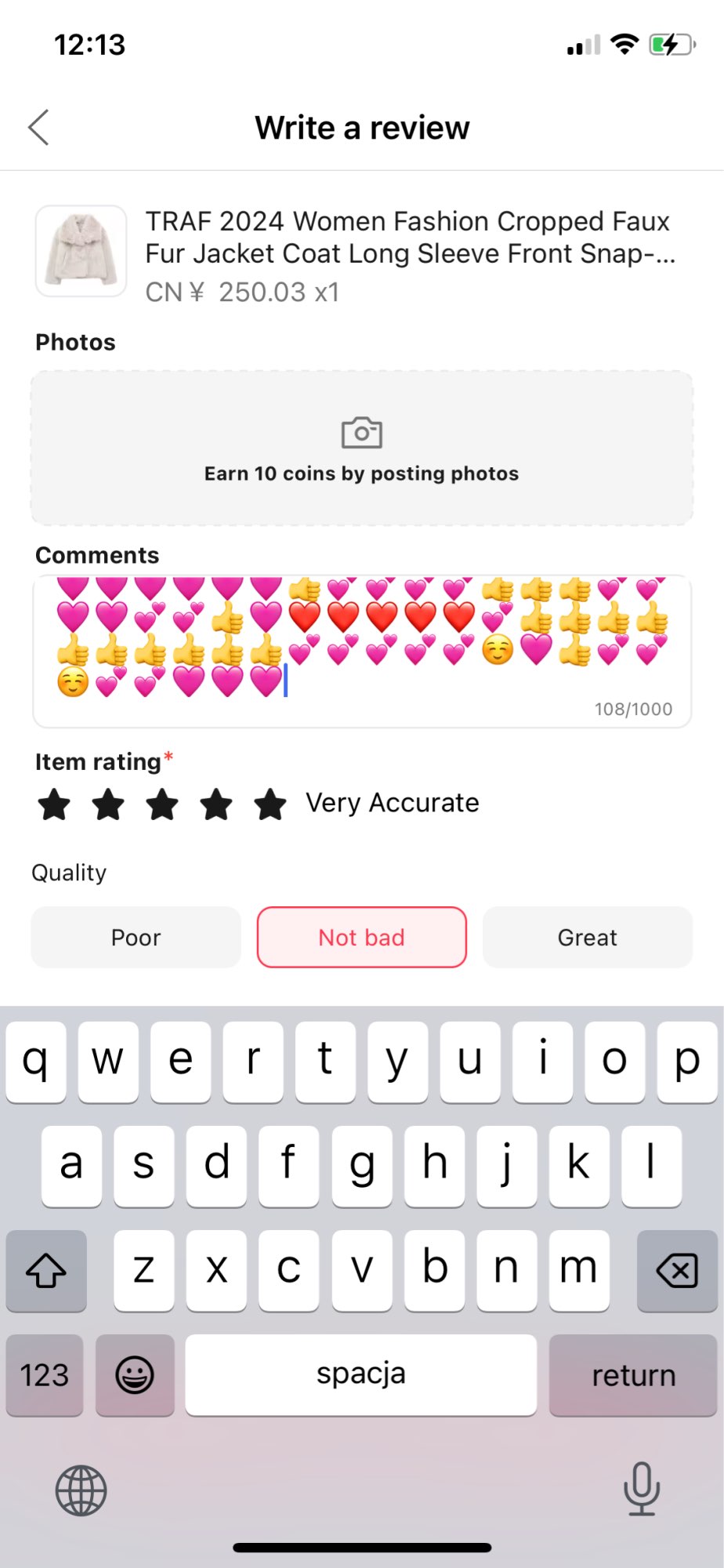 Awesome Fur Coat, came to the NP in 6 days!! For the height of the 175 I took L fits perfectly in length and sleeves, I will insulate, as thin material-but one in one like Zara