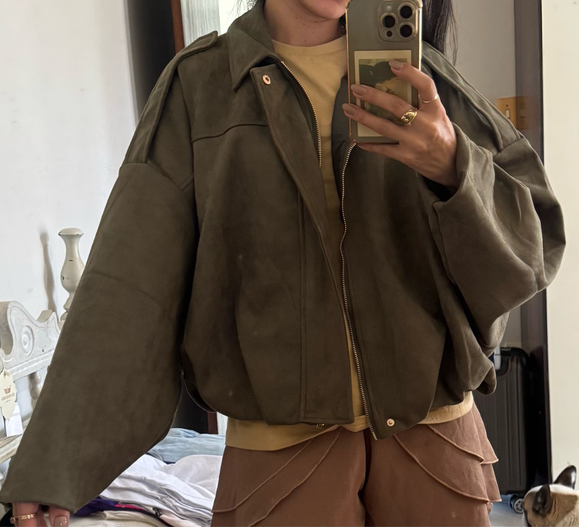 It's beautiful, a big Pokito. I wear a size 38 at Zara, I took an M. A S would be better, it's big even though it's oversized.