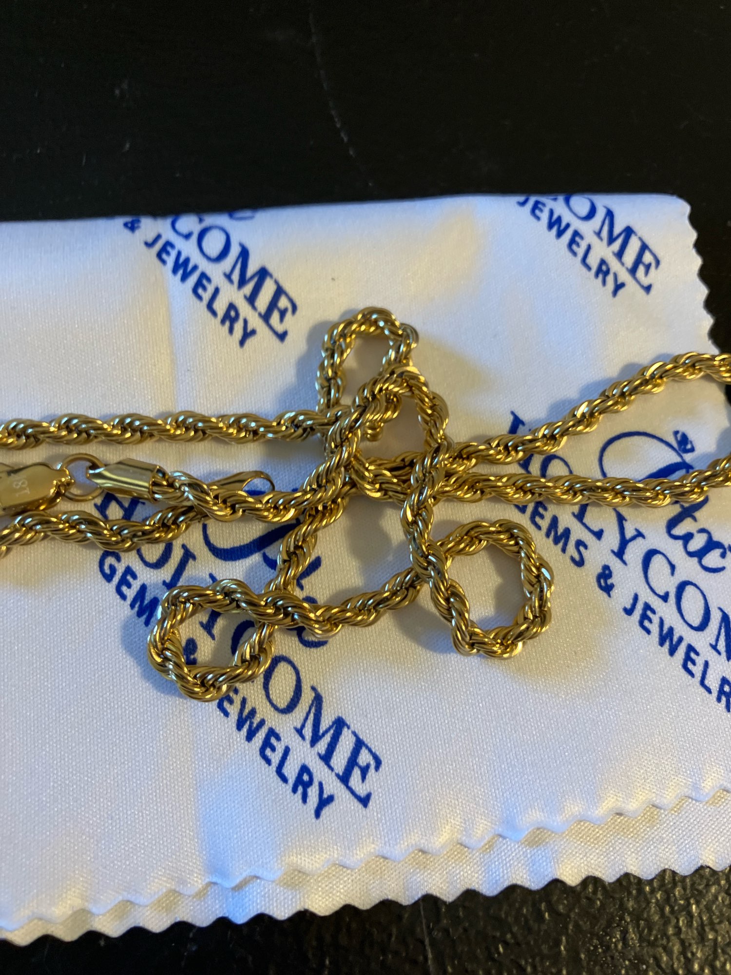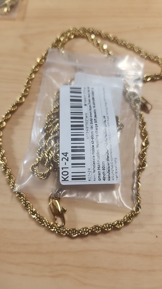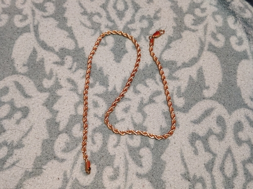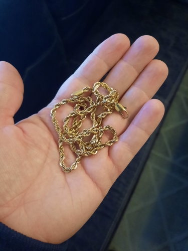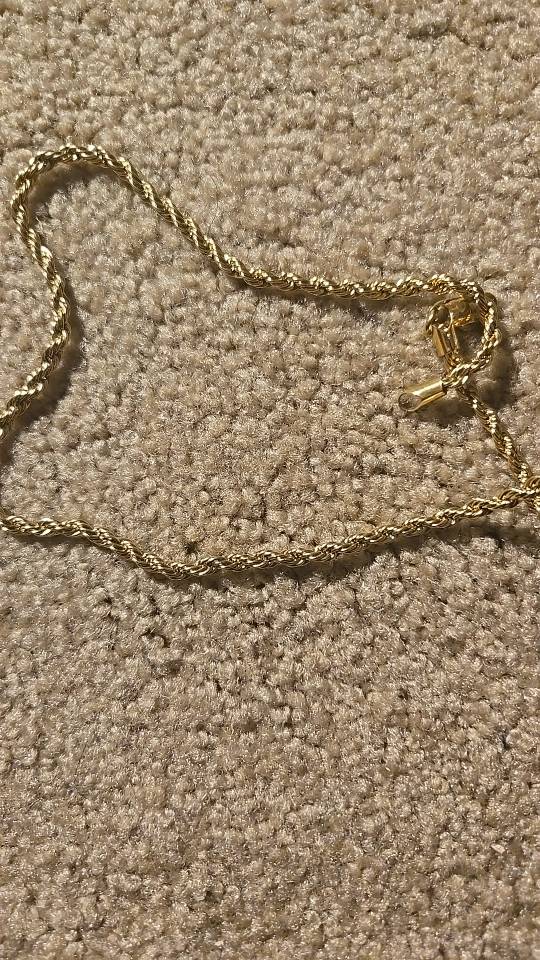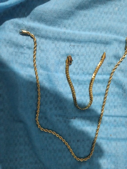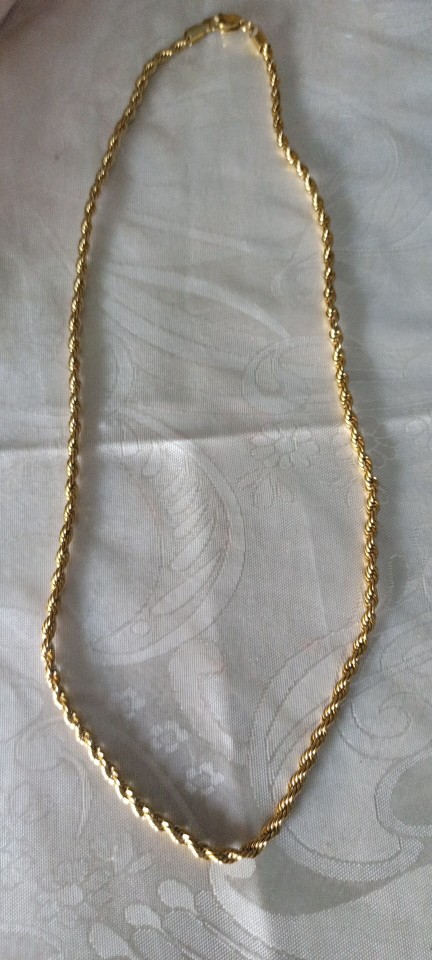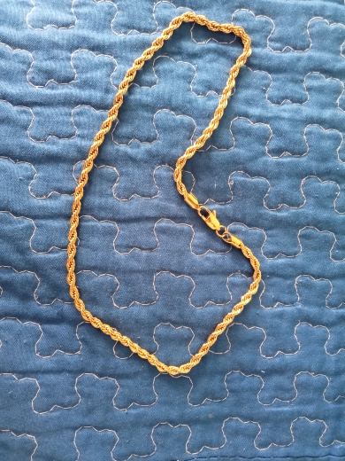 This necklace is of very good quality it shines n to yellow very fast shipping n seller is awesome
