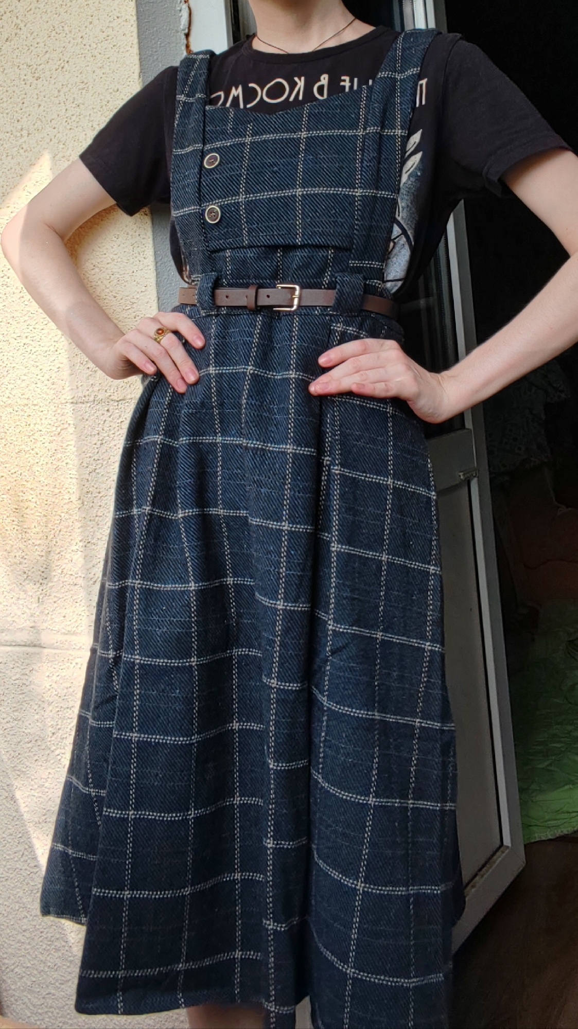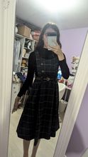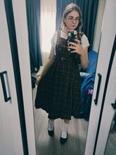 Very cute sundress!!! The material is dense, perfect for autumn. A little thread sticks out of the minuses, but not critical. Comes with a belt ^ ___^